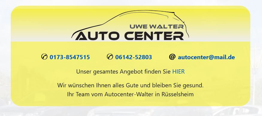 Willkommen bei der Firma Auto-Center Rüsselsheim - Ihrem Partner beim Gebrauchtwagenkauf seit über 25 Jahren. Wir bieten Ihnen immer eine große Auswahl der unterschiedlichsten Modelle verschiedener Hersteller an. Sollte Ihr Traumwagen nicht dabei sein, so werden wir ihn für Sie besorgen. Alle unsere angebotenen Fahrzeuge sind vorrätig, meistergeprüft und können ohne Voranmeldung probegefahren werden. Selbstverständlich bieten wir für alle unsere Fahrzeuge Ihnen die Möglichkeit über unseren Bank-Partner zu finanzieren. Und wenn Sie Ihren 'Alten' gleich da lassen wollen? Kein Problem - wir kaufen auch gute Gebrauchtwagen an. Testen Sie uns und werden auch Sie einer unseren vielen zufriedenen Kunden. Wir freuen uns auf Sie.