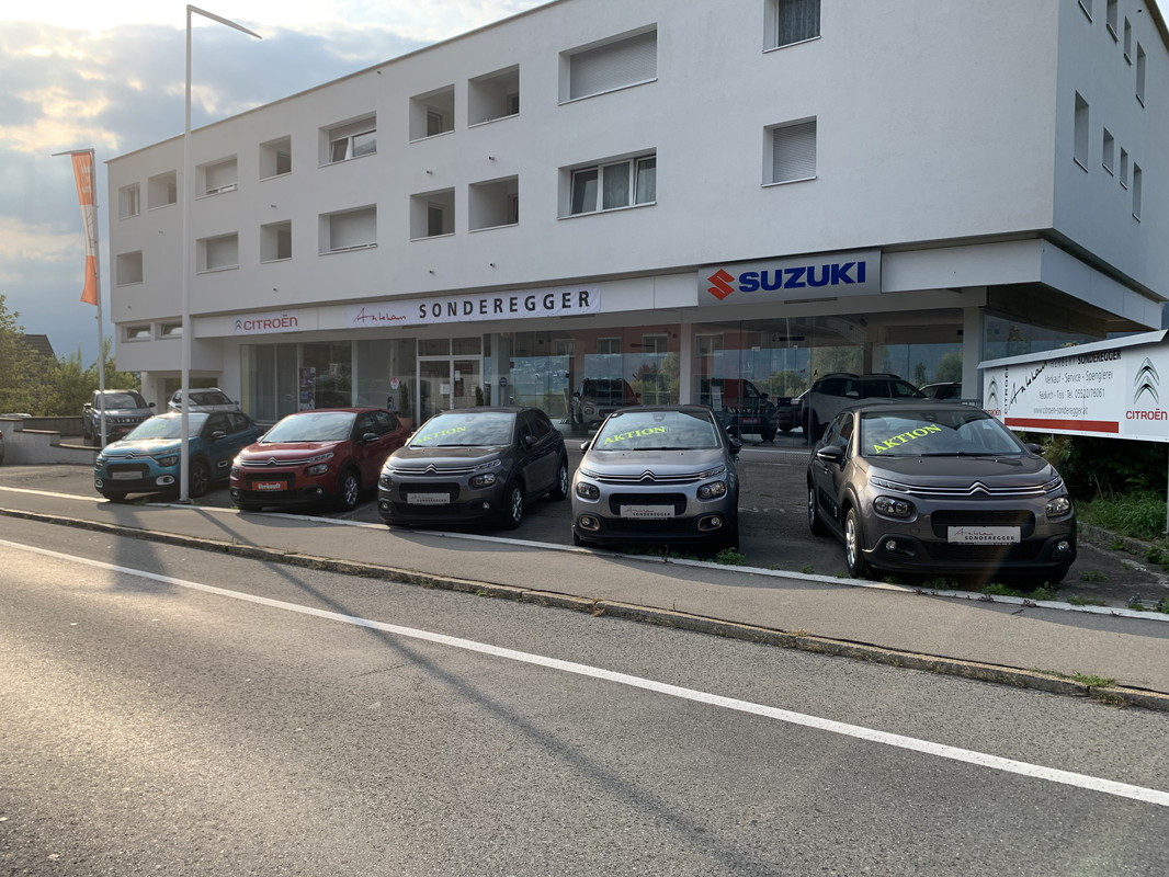 "Unser Autohaus wurde 1973 von Herbert Sonderegger gegründet und ist seit diesem Zeitpunkt Citroen Partner. Seit 2010 vertreten wir zusätzlich die Marke Suzuki. Mit Jänner 2019 hat Fabian Sonderegger die Firmenführung übernommen. Großes Augenmerk legen wir auf unsere Werkstatt. Zudem kümmern wir uns gerne um Old- und Youngtimer. Wir sind Komplettanbieter in Sachen KFZ, ob Kauf, Versicherung, Finanzierung, Reparatur oder Pannendienst, wir kümmern uns darum. Auch haben wir eine Vermietung für PKW und NFZ. Besuchen Sie uns. Ihr Fabian Sonderegger"