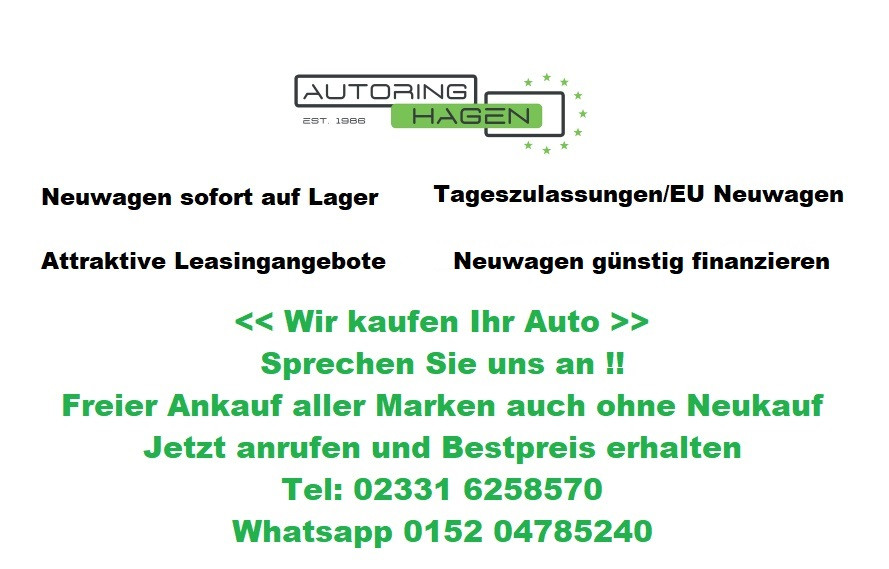 EU Neuwagen & Tageszulassung Wir sind ein inhabergeführtes Familienunternehmen mit Hagener Wurzeln, das seit 1986 besteht und mittlerweile in zweiter Generation geführt wird. Wir stehen in Hagen für Kompetenz und Zuverlässigkeit bei allen Themen rund um den Kauf bzw. die Finanzierung von Neuwagen und Tageszulassungen sowie Gebrauchtwagen. Unsere Beratung ist persönlich. Angebote werden individuell auf Sie maßgeschneidert, dazu bieten wir Ihnen umfassende Garantieleistungen. Neuwagen sofort verfügbar auf Lager Tageszulassungen zu Discountpreisen Attraktive Leasingangebote Top-Finanzierungsangebote Wir kaufen Ihr Auto-Jetzt unverbindlich Anfragen - Bestpreis erhalten!
