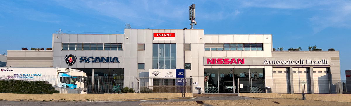 Sita appena al di fuori del casello autostradale di Genova Aeroporto, Autoveicoli Erzelli s.p.a. da oltre 50 anni si occupa della vendita ed assistenza di veicoli industriali e commerciali. Siamo concessionari SCANIA, ISUZU, GIOTTI VICTORIA E MAXUS.