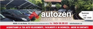 Autozen srl, autosalone plurimarca, è presente a Rosà (Vicenza) nel settore della compravendita di autovetture nuove e usate da quasi 50 anni. La continuità di due generazioni e uno staff sempre giovane ed emergente si confrontano con l’attuale mercato proponendo un'ampia gamma di autovetture nuove e usate, controllate e selezionate, disponibili per il mercato italiano ed estero. Automezzi commerciali e autoveicoli aziendali completano la panoramica che si propone con più di 1000 mq di esposizione.