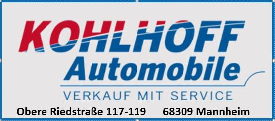 Autohaus Hans Kohlhoff GmbH & Co. KG Obere Riedstraße 117-119 68309 Mannheim Telefon: 0621 7280843 Neu und Gebrauchtwagen Verkauf: Mathias Arslan Tel: 0621 72 808 43 Service : 0621 72 8080