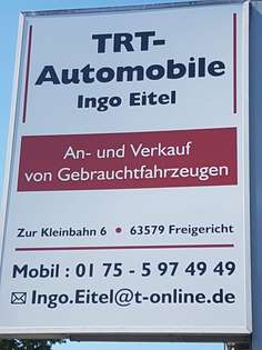 Horaires d'ouvertureTRT-Automobile Inh. Ingo Eitel KFZ An + Verkauf Inzahlungnahme jeglicher Fahrzeugtypen Bitte kontaktieren Sie mich vor Ihrem Besuch telefonisch, damit ich mit Ihnen einen persönlichen Beratungstermin Zeitnahe vereinbaren kann. MfG Ingo Eitel
