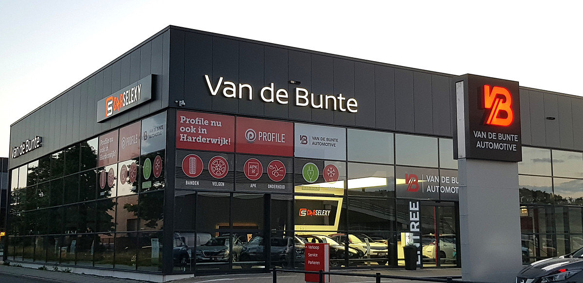 Horaires d'ouvertureOver ons - Kennis van Automotive al sinds 1991 In 1990 zijn Henk en Henny van de Bunte begonnen met de bouw van het autobedrijf in Nunspeet. Er werd een showroom en een werkplaats gerealiseerd. Op 1 juni 1991 werd het pand feestelijk geopend. Eerst werd er begonnen als service punt voor Nissan. In 1994 kwam daar het dealerschap bij. Vanaf dat moment kon er naast de vertrouwde service ook nieuwe Nissans geleverd worden. Profile Car & Tyreservice - In 2007 wordt Profile car & tyrecenter aan de firma toegevoegd. Hierdoor kan nu ook de zakelijke rijder terecht bij Van de Bunte voor onderhoud en de bandenwissel in Harderwijk en Nunspeet. In 2012 is het bedrijf verder uitgebreid met een bandenhotel. Hierin kunnen 2000 banden worden opgeslagen. Door deze verandering kunnen wij onze klanten nog meer service bieden. Van de Bunte Automotive is klaar voor de toekomst - In het voorjaar van 2017 werd er gestart met de bouw van een geheel nieuw pand aan de Zuiderbreedte in Harderwijk. Het nieuwe pand is voorzien van 165 zonnepanelen die op het dak gemonteerd zijn. Deze panelen bieden de benodigde elektriciteit voor het autobedrijf. De drie aardwarmte pompen zorgen dat de vloerkoeling en vloerverwarming optimaal zijn werk kan doen. Door deze toepassingen is het gehele pand CO2 neutraal. In 2024 zijn wij tevens Carselexy dealer geworden voor de Veluwe! Hiermee is Van de Bunte Automotive klaar voor de toekomst!