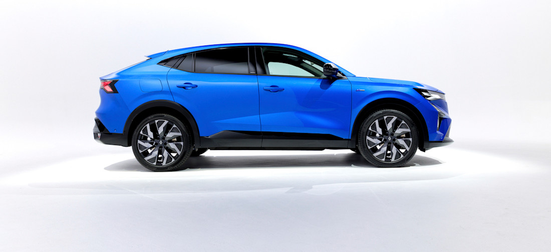 Visuellement, le Rafale dispose déjà des armes nécessaires : il arbore le nouveau langage stylistique de Renault déjà évoqué dans la Clio récemment faceliftée, avec des lignes acérées, anguleuses et agressives, tandis que les jantes de 20 pouces et l'habillage noir de la carrosserie devraient lui donner un air un peu moins massif. Comme sur la Clio, la signature lumineuse en forme de C est remplacée par des lignes horizontales. Si vous y voyez un lien avec Peugeot, ce n'est pas une coïncidence : le designer Gilles Vidal est passé de Peugeot à Renault en 2020.