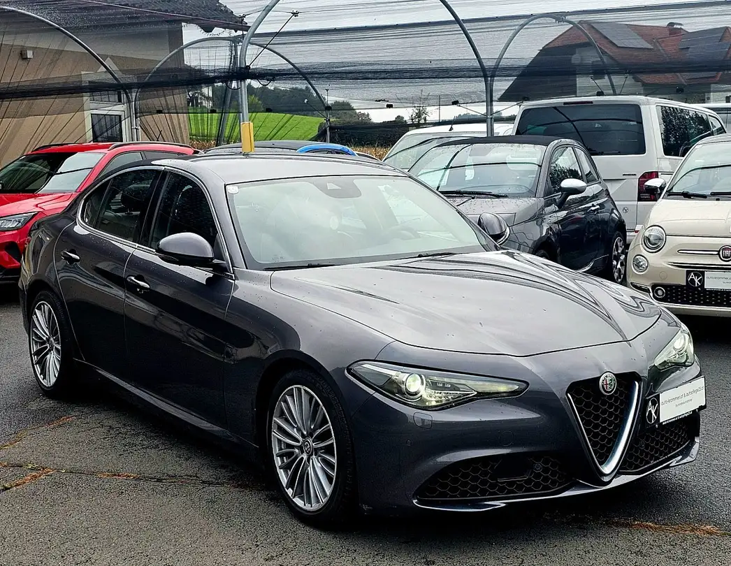 Alfa Romeo Giulia Super 2,0 200 AT RWDEHEMALIGER NEUPREIS (inkl. Sonderausstattung) 55.707,49 €Sonderausstattung• 18'' Aluminium Felgen - Lusso mit Bereifung vorne 225/45, hinten 255/40• 40/20/40 umklappbare Rücksitzbank• 6-Wege elektrisch verstellbarer Beifahrersitz• 6-Wege elektrisch verstellbarer Fahrersitz (mit Memory)• Ablagefach auf der Fahrerseite• Air Quality System (AQS)• Alfa Connect 3D Nav 8,8" - 8,8"-Farbbildschirm mit Split-Screen Funktion, - Navigation mit Europa-Kartenmaterial, - FM/AM Radio, USBund AUX-Anschluss, - Bluetooth-Freisprecheinrichtung und-Audio-Streaming, - Rotary-Pad Bedienung, - Sprachsteuerung, - 8Lautsprecher• Aluminium Frontblende, Sportpedale und Fußstütze• Aluminum Mittelkonsole, Aluminum Türeinlagen vorne• Aluminum Sportpedale, beinhaltet Fußstütze• Athermische Windschutzscheibe• Außenspiegel - elektrochromische Abblendefunktion• Automatischer Fernlichtassistent• Beheizte Scheibenwaschdüsen• Bi-Xenon-Scheinwerfer 35W + AFS• Bremssättel Rot• DAB - Digital Audio Broadcast• Elektrisch anklappbare Außenspiegel• Fahrassistenz Paket PLUS - 508 Parksensoren vorne und hinten - XAN Totwinkel-Assistent (Außenspiegel integriert) - 64L Außenspiegel- elektrochromische Abblendefunktion - 410 Rückspiegel mit automatischer Abblendefunktion - 316 Rückfahrkamera mit dynamischenGitterlinien - JKJ Automatischer Fernlichtassistent• Fensterblende hinten• Fensterumrahmung Chrom (DLO)• Keyless Entry für Fahrer/Beifahrertür• Klima Paket Plus - 384 Air Quality System (AQS) - 6NT Klimatisiertes Handschuhfach - 83X USB Anschluss vorne - RSX USBAnschluss hinten - 693 Lüftungsöffnungen hinten - 57J Athermische Windschutzscheibe• Klimatisiertes Handschuhfach• Komfort Paket Plus - GX4 Keyless entry (Fahrer- und Beifahrertür) - 83Z Türgriffbeleuchtung - 103 Fensterblende hinten - 845Ablagefach auf der Fahrerseite - 50X Sonnenblende mit beleuchteten Make-Up Spiegel (Fahrerseite)• Ledersitze• Leichtlaufreifen• Lenkradheizung• Lüftungsöffnungen hinten• Metallic-Lackierung Grigio Vesuvio• Parksensoren vorne und hinten• Raucherkit• Reifen mit Notlauf Eigenschaften• Rückfahrkamera mit dynamischen Gitterlinien• Rückspiegel mit automatischer Abblendefunktion• Scheinwerfer Waschanlage• Sitze Paket - 136 6-Wege elektrisch verstellbarer Fahrersitz - CDE 6-Wege elektrisch verstellbarer Beifahrersitz• Sitzheizung vorne• Sonnenblende mit beleuchteten Make-Up Spiegel - Fahrerseite• Sport Lederlenkrad• Sport Paket AFS - 156 Aluminum Mittelkonsole, Aluminum Türeinlagen vorne - 321 Sport Leder Lenkrad - 4CS Aluminum Sportpedale,beinhaltet Fußstütze - 230 35W Bi-Xenon Scheinwerfer + AFS - 102 Scheinwerfer Waschanlage• Totwinkel-Assistent (Außenspiegel integriert) Rear Cross Path-Assistent• Türgriffbeleuchtung• USB Anschluss hinten• USB Anschluss vorne (zusätzlich)• Winter Paket - NHS Lenkradheizung - 452 Sitzheizung vorne - 110 Beheizte ScheibenwaschdüsenOptional:• 12-36 Monate Garantie ab 500,00 €Für Besichtigung und Probefahrt bitte vorab einen Termin vereinbaren.Gerne per Anruf, WhatsApp, SMS unter +43 664 / 86 66 992 oder Email.Unsere Leistungen für die beste Abwicklung– Leasing- & Finanzierung in wenigen Minuten– einfach anfragen– Eintausch Ihres Fahrzeugs– gerne erhalten Sie weitere Infos, Fotos und Videos vorab von aus– Unterstützung bei der Überstellung– Persönliche BetreuungIch freue mich auf Ihre Anfrage.Satz-Druckfehler vorbehaltenIrrtum vorbehaltenZwischenverkauf vorbehalten