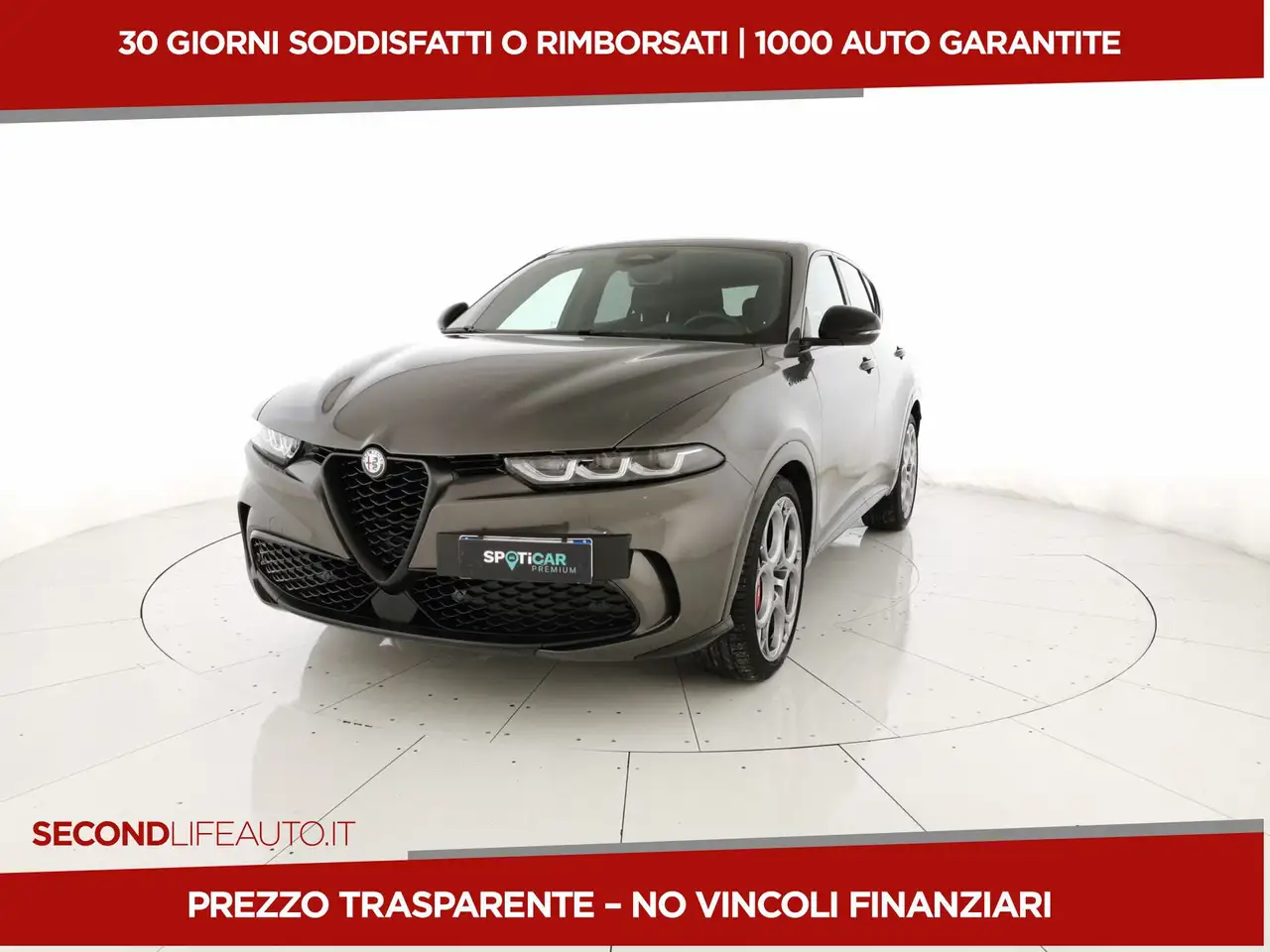 AEB con riconoscimento pedone - Alfa Connected Services - Ambient Lighting - Ambiente Nero - Avviso occupazione sedile posteriore - Badge specifico "Speciale" - Body kit Dark Miron lucido con skidplate con inserti laterali e anteriori Miron opaco - Bracciolo centrale - Calotte specchi nero lucide con dettaglio "tricolore" - Cannocchiale cluster 12,3" Full TFT - Cerchi in lega da 20" con pneumatici 235/40 R18 non catenabili - Climatizzatore automatico bi-zona - Coprimozzo Alfa Romeo bianco e nero - Cristalli posteriori oscurati - Fari full led matrix adattivi e funzionalità dinamiche - Fari posteriori full led con tecnologia Infinity Mirroring ed effetto 3D - Finitura contorno esterno finestrini nero lucido - Intelligent Adaptive Cruise Control - Keyless go - Lane Support System (Lane Departure Warning e Lane Keeping Assist) - Luce abbagliante/anabbagliante automatica - Luci di cortesia portiere anteriori e posteriori - Palette cambio al volante in alluminio - Passive entry - Pedaliera e batticalcagno in alluminio - Pinze freno rosse Brembo con impianto frenante maggiorato - Plancia in Soft-Touch con doppia cucitura grigia - Portellone elettrico - Portellone elettrico con funzione Hands free - Prese USB posteriori Type A+C - Regolazione lombare elettrica a 4 vie lato guidatore - Regolazione sedili manuale a 6 vie lato guidatore e passeggero - Riconoscimento segnaletica stradale - Rilevamento sonnolenza conducente - Sedile posteriore abbattibile 60/40 con ski pass e bracciolo poggiatesta centrale - Sedili in Alcantara traforata e tessuto tecnico soft-touch con cuciture rosse - Sensori Di Parcheggio Anteriori E Posteriori - Sistema Infotainment da 10.25" con navigazione, 2 porte USB, Bluetooth e comandi vocali - Specchietti esterni richiudibili elettricamente - Specchietti retrovisori esterni riscaldabili - Specchietto retrovisore interno elettrocromico - Telecamera posteriore con griglie dinamiche - Trilobo Alfa Romeo esagonale - V Scudetto Dark Miron opaco - Volante sportivo in pelle - Wireless Apple Car Play /Android Auto - Wireless Charging Pad