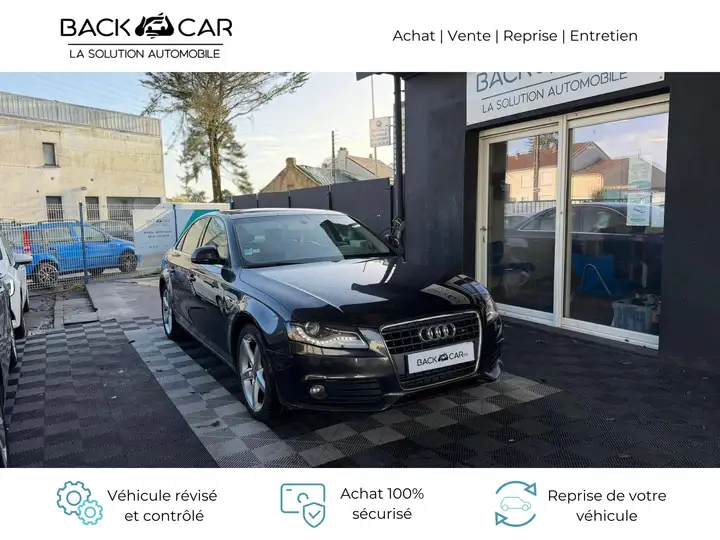 Equipements supplémentaires : ABS + EBV + ESP, ABS avec EBV et systeme d'assistance au freinage d'urgence, Accoudoir central AR, Accoudoir central AV avec vide-poches et 2 prises 12V dans la console centrale, Airbag grand volume pour conducteur et passager AV avec detection de la position du siege, airbag, Airbags de tete Sideguard, Airbags lateraux AV, Allume-cigare, Anti-demarrage electronique, Anti-patinage (ASR), Applications de laurier brun muscade sur tableau de bord, contre-portes et console centrale, Appuis-tete AV et AR reglables, Appuis-tete AV et AR reglables en hauteur et inclinables, Audi Backguard, Audi Hold Assist (Assistant de demarrage en pente), Audi Pre Sense Plus, Autoradio Concert lecteur CD et lecteur cartes SD compatibles MP3 et WMA, 8HP, 80W, Avertisseur sonore 2 tons, Banquette AR rabattable 1/3-2/3, Blocage electronique de differentiel EDS, Capot de coffre a ouverture automatique, s'ouvre seul lorsqu'on le deverrouille, Carrosserie entierement galvanisee contre la corrosion, Ceintures 3 points a enrouleur a toutes les places, Ceintures AV a pretensionneurs pyrotechnique et limiteurs d'effort, Ceintures de securite 3 points a enrouleur pour tous les sieges, avec controle du port a l'AV et, Cendrier, dans la console centrale a l'AV et a l'AR, allume-cigares a l'AV, Cendriers sur console centrale et a l'AR, Changeur 6 CD compatible MP3 integre en facade, Chassis dynamique, Ciel de pavillon en tissu assorti a la couleur interieure, Climatisation automatique avec reglage asservi a la position du soleil, regule electroniquement la, Climatisation automatique Confort Plus 3 zones, ajoute a la climatisation automatique:, Climatisation automatique Confort Plus 3 zones: ajoute a la climatisation automatique:, Colonne de direction de securite, Compartiment a lunettes, dans le module d'eclairage au dessus du retroviseur interieur, Contact d'allumage, electronique, cle de contact pouvant memoriser differentes donnees d'entretien, Detecteur de pluie et de luminosite, Detecteur de pluie et de luminosite incluant fonction Coming home/Leaving home, Direction assistee servotronic asservie a la vitesse, Dossier banquette AR rabattable 1/3-2/3 ou completement, Eclairage interieur a temporisation et contacteurs sur toutes les portieres; eclairage du coffre,, Eclairage interieur, a temporisation avec contacteurs sur toutes les portes, eclairage du coffre, du, Ecran central a affichage monochrome pour l'affichage des differentes alertes vehicule, Ecrous antivol, Entourages de vitre aluminium, revetement noir brillant sur les montants de pavillons centraux et, ESP: Programme electronique de stabilisation avec amplificateur hydraulique de freinage d'urgence,, Essuie-glaces 2 vitesses, intermittence reglable a 4 positions, commande de balayage coup par coup, Etui a lunettes dans le module d'eclairage interieur AV au dessus du retroviseur interieur, Frein de stationnement electromecanique + fonction de frein de secours sur les 4 roues, GPS Plus : systeme de navigation GPS Plus avec DVD Europe commande par le MMI, Indicateur d'usure des garnitures de frein, Indicateur d'usure des garnitures de frein AV, affichage sur l'ecran central, Indicateur de rapport de vitesse dans le systeme d'information du conducteur, Indicateur de temperature exterieure, Instrumentation avec eclairage reglable, Jantes en aluminium coule style 10 branches en etoile, 8Jx17 avec pneus 245/45 R17, Leve-vitres electriques AV et AR avec protection anti-pincement et fonction Confort, Limiteurs d'effort sur les ceintures de securite AV, Lunette AR degivrante avec minuterie, Moulures de seuils de portes noires, Oeilletons de fixation dans le coffre, 4 oeilletons de fixation du chargement, Ordinateur de bord couleur et controle autocheck, Outillage de bord dans le coffre, Pack Brillance : baguettes en aluminium anodise sur les entourages de vitres,, Pack Eclairage, Phares antibrouillard integres dans le pare-chocs, Phares halogenes a reglage electrique, Phares halogenes a surfaces lisses sous vitre transparente, feux diurnes, reglage electrique du site, Poignees de maintien (4), encastrees dans le pavillon, rabattables avec amortisseurs, Poignees de portieres exterieures laquees dans la couleur de carrosserie, Porte-boissons double sur la console centrale, Pretensionneurs de ceintures de securite AV, Reglage d'appuis lombaires electriques sur 4 plans pour sieges AV, Regulateur de vitesse : permet de maintenire constante - dans la mesure ou la puissance du moteur, Retroviseur interieur avec reglage jour/nuit automatique, Retroviseurs exterieurs, avec clignotants lateraux a diodes integres,, Roue de secours temporaire, Roue de secours temporaire, incluant cric dans le coffre, Sellerie Cuir Milano, Servotronic : direction a assistance variable, Sieges AV electriques, Sortie d'echappement chromees (simples ou doubles selon la motorisation), Systeme audiophonique Audi, Tapis complementaires en velours AV et AR, Tapis velours AV et AR, Telep