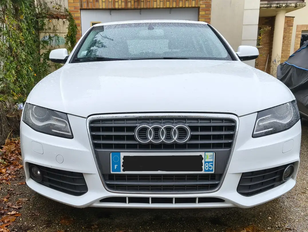 Je vends mon Audi A4 berline finition Business Line de janvier 2012, une voiture agréable à conduire, très fiable et économique car très bonne motorisation. (Environ 5L/100 en usage mixte) - Kilométrage : 168 500 km - Motorisation : 2.0 TDI 143 ch - Carburant : Diesel - Boîte de vitesses : Automatique Finition : Business Line (version très bien équipée) Nombre de portes : 4 - Nombre de sièges : 5 -Couleur : Blanc - Critair : 2 - Contrôle technique : Valide jusqu'en 07/2026 et sera réalisé à nouveau pour la vente. - Equipements principaux : Phares xénon, climatisation automatique, régulateur de vitesse, GPS Audi, bluetooth, commandes au volant, volant multifonctions, ordinateur de bord, rétroviseurs électriques et dégivrants, radars de recul, jantes alliage, pare-soleil Audi sur vitres arrière, pare-soleil automatique Audi sur lunette arrière, vraie roue de secours...
