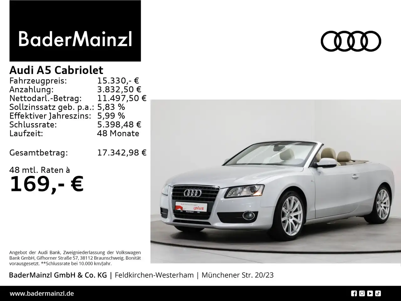 Angaben zum Hersteller: AUDI AG, Audi, Auto-Union-Straße 1, 85057 Ingolstadt, Deutschland, +49-841-89-0, kundenbetreuung(at)audi.de