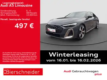 GARANTIE, ANSCHLUSSGARANTIE, Laufzeit 3 Jahre im Anschluss a. d. Herstellergar., max. Gesamtlaufl. 100.000 km, HIGHLIGHTS, EDITION ONE, NAVIGATIONSSYSTEM, LM-Felgen 20", Anhängekupplung mechanisch schwenkbar, Umgebungskameras, MATRIX LED-SCHEINWERFER, RÜCKFAHRKAMERA, Audi PHONE BOX, Handyvorbereitung, ASSISTENZ-SYSTEME, ACC-ABSTANDSGeschwindigkeits-Regelanlage-ADAPTIVE CRUISE CONTROL, Müdigkeitserkennung, NOTBREMSASSISTENT, VERKEHRSZEICHENERKENNUNG, ABBIEGE-ASSISTENT, NOTRUFSYSTEM, Einparkhilfe PDC vorne und hinten, Assistenzpaket Fahren und Parken, Assistenzpaket Schutz-und Warnsysteme pus, AUSWEICH-ASSISTENT, Einparkhilfe plus mit Distanzanzeige, Parkassistent plus, Proaktiver Insassenschutz Front, Seite und Heck, Spurwechsel- und Ausstiegswarnung, Querverkehrassistent hinten und Abbiegeassistent hinten, Verkehrszeichenbasierter Geschwindigkeitsbegrenzer, Insassenerkennung im Fond, Querverkehrassistent vorn, INFOTAINMENT & MULTIMEDIA, Audi Connect, Audi VIRTUAL COCKPIT PLUS, DAB-Digitaler Radioempfang, SOUNDSYSTEM, Audi Smartphone Interface, MMI Beifahrerdisplay, Radio, SPORTPAKETE, S LINE EXTERIEUR, S LINE INTERIEUR, FAHRWERK, Bremssättel rot lackiert, S LINE Sportfahrwerk, KOMFORT, Mittelarmlehne vorn, 3-Zonen Klimaautomatik, ELEKTRISCHE HECKKLAPPE, SITZHEIZUNG vorne, Fensterheber elektrisch, Fensterheber elektrisch vorne + hinten, Außenspiegel beheizbar, Außenspiegel el. anklappbar und abblendend, Außenspiegel elektrisch einstellbar, Innenspiegel automatisch abblendend, KOMFORTSCHLÜSSEL, Scheiben seitlich und hinten in Wärmeschutzverglasung, Wärmeschutz- und Akustikverglasung Frontscheibe, Zentralverriegelung, Lendenwirbelstütze/n, INNEN-AUSSTATTUNG, Pedale in Alu- bzw Edelstahl-Optik, SPORTSITZE, Akzentflächen und Bedientasten schwarz glänzend, Dekoreinlagen Alu matt gebürstet, Multifunktions-Sport-Lederlenkrad oben und unten abgeflacht mit Schaltwippen, DACHHIMMEL IN SCHWARZ, Interieurelemente oben und unten mit Kontrastnaht, AUSSEN-AUSSTATTUNG, Abgedunkelte Scheiben ab B-Säule, Endrohrblenden verchromt dunkel, LED-Heckleuchten pro, DESIGN, Außenspiegelgehäuse Schwarz lackiert, Einstiegsleisten mit Aluminiumeinleger, beleuchtet, LICHT & SICHT, Scheinwerferreinigung, MATRIX-Funktion, Projektionsleuchte in den Außenspiegeln, Tagesfahrlicht mit Assistenzfahrlicht u.Coming- u. Leaving-home Funktion automatisch, TECHNIK, Reifendruckkontrolle, Audi DRIVE SELECT, Digitaler Schlüssel, Telefonablage mit induktiver Ladefunktion und Mobilfunk-Koppelantenne, USB-Anschlüsse mit Ladefunktion in erster und zweiter Sitzreihe, Servolenkung, elektr. Wegfahrsperre, UMWELT, Otto-Partikelfilter (OPF), GETRIEBE, 7-Gang-Automatikgetriebe, SICHERHEIT, FRONT-Airbags, INTERAKTIONS-Airbag vorne, KOPF-Airbags, SEITEN-Airbags hinten, SEITEN-Airbags vorn, Kindersitzverankerung i-Size auf Beifahrersitz und äußeren Fondsitze, Top Tether, Airbag-Deaktivierungsschalter, ABS - ESP, Aufmerksamkeitsassistent, Kopfstützen vorn, AUSSTATTUNGSPAKETE, Ausstattungslinie S line, Sonstiges, Komfortpaket Plus, Ambiente-Lichtpaket pro, MMI experience plus, Tech plus, Wegfahrsperre, edition one mit Akzenten magnesiumgrau, Räder Audi Sport 5-Arm-Falx grau seidenmatt glanzgedreht 8.5x20, Querverkehrassistent vorn, Interieurelemente umlaufend Stoff Kaskade, Insassenerkennung im Fond, Lenkradapplikation Chromoptik S-Emblem, Lenkradgriffe perforiertes Leder und Kontrastnaht, Türgriffe schwarz, Interieurelemente oben und unten mit Kontrastnaht