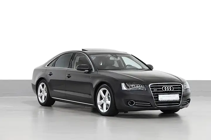 Innenausstattung: Dekoreinlagen Holz Nussbaumwurzel braun erweitert, Innenausstattung: Dekoreinlagen unten hochglänzend schwarz, Allradantrieb ( quattro ), Sport - Fahrwerk ( adaptive air suspension - sport ), Komfort - Klimaautomatik 4 - Zonen, Schiebe -/ Hebedach elektrisch ( Glas ) mit Vorwahlautomatik, Memory - Paket, Vollleder - Komfortsitze ( schwarz ), Sitzheizung ( vorn und hinten ), Standheizung mit Zeitschaltuhr, Assistenz - Paket inkl. Audi pre sense plus, Geschwindigkeits - Regelanlage, Aktiv mit Stop & Go - Funktion, Multi - Media - Interface MMI Navigation Plus, TV - Empfang ( Tuner ) analog und / oder digital / Radioempfang digital, DVD - Wechsler, Sound - System BOSE, Mobiltelefon / Handy ( Bluetooth ) mit Audi connect, Einparkhilfe APS vorne und hinten, Alarmanlage, Außenlicht - Paket, Innenlicht - Paket, Ambiente - Beleuchtung, LED - Tagfahrlicht, LED - Scheinwerfer, Scheinwerfer - Waschanlage, Komfortzugang ( Öffnungs - und Schließsystem ), Gepäckraumklappe elektrisch betätigt ( öffnen + schliessen ), Servoschliessung für Kofferraumdeckel, Servoschliessung für Türen, Sonnenschutzrollo an Heckscheibe und Seitenscheibe hinten elektrisch, Wärmeschutzverglasung ( Dämmglas ), Regensensor und automatische Fahrlichtsteuerung, Schlüsselloser Motorstart.
