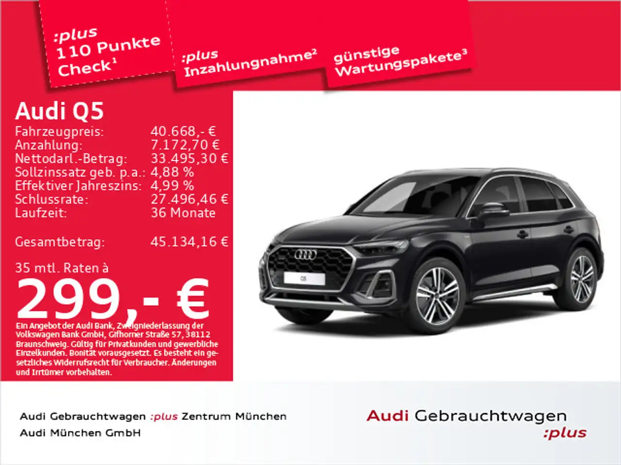 Die angegebenen Verbrauchsangaben beziehen sich auf WLTP-Werte. Zwischenverkauf und Irrtümer für dieses Angebot sind ausdrücklich vorbehalten. Ausschlaggebend sind einzig und allein die Vereinbarungen in der Auftragsbestätigung oder im Kaufvertrag. Den genauen Ausstattungsumfang, die genauen Kilometer und den Verkaufspreis erhalten Sie von unserem Verkaufspersonal. Bitte kontaktieren Sie uns.