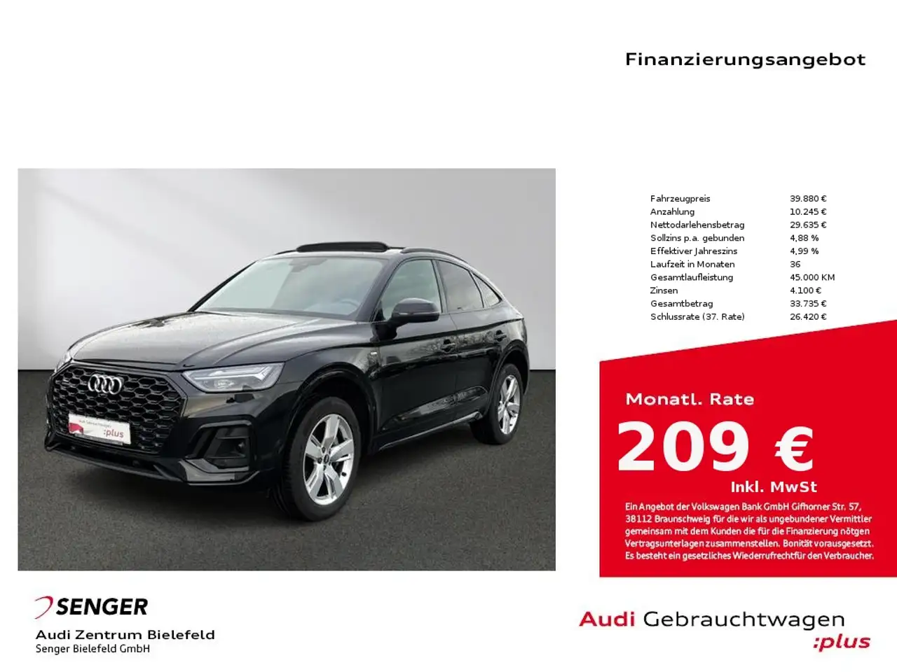 - Anbieterbank Audi Bank GmbH - Zweigniederlassung Volkswagen GmbH - Gifhorner Str. 57 - 38112 Braunschweig