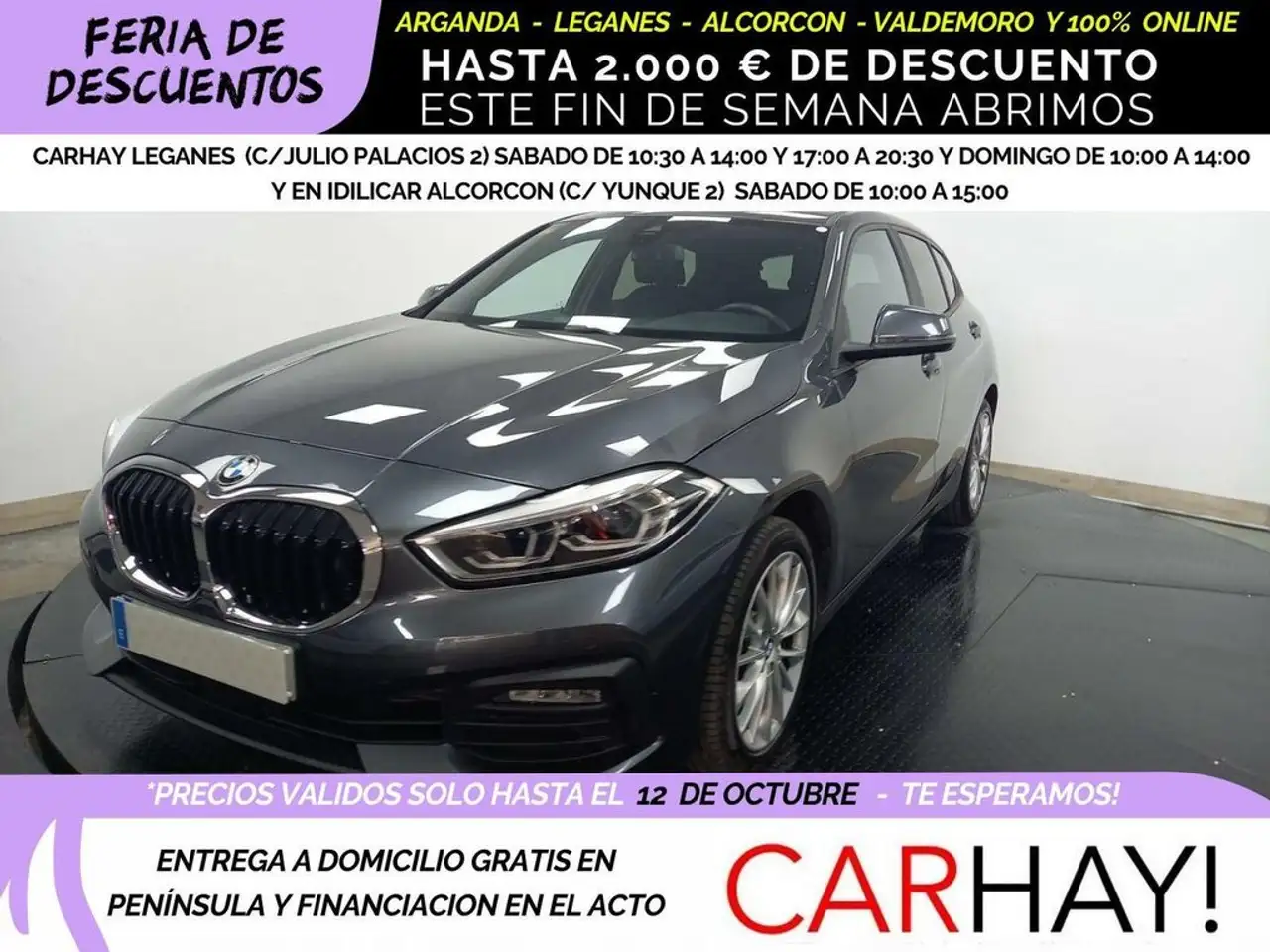 COMPRA TU COCHE ONLINE O EN CUALQUIERA DE NUESTROS CENTROS Y SI ERES DE FUERA DE MADRID TE LO ENVIAMOS GRATIS A CUALQUIER PUNTO DE LA PENÍNSULA CON NUESTRO SERVICIO DE ENTREGA A DOMICILIO, CONTACTA CON NOSOTROS Y TE ENVIAMOS HISTORIAL DE MANTENIMIENTO, PERITACION Y CERTIFICADOS, TE CALCULAMOS LA FINANCIACIÓN Y TE ACLARAMOS CUALQUIER DUDA.