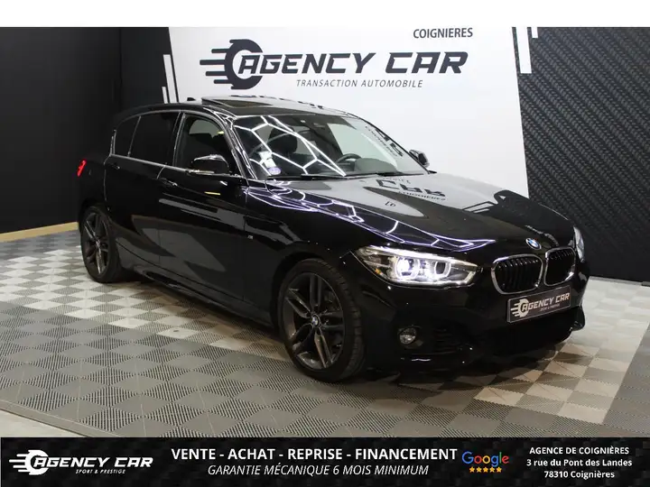 AGENCY CAR showroom automobile situé dans l'ouest parisien vous accompagne depuis 2014 dans vos projets d'achat de véhicules d'occasion. Nous vous proposons BMW SERIE 1, NOIR, 7 cv, 5 portes, première mise en circulation le 02-03-2018, garantie 6 mois. Véhicule visible UNIQUEMENT SUR RDV à l'agence de Coignières (78). Du mardi au vendredi 10h - 18h30 et le samedi de 9h30 à 17h. - Financement possible de 12 à 72 mois. - Possibilité d'extension de garantie jusqu'à 48 mois. - Livraison dans toute la France (sur devis). - Des erreurs peuvent se glisser dans nos annonces, n'hésitez pas à nous contacter par téléphone pour plus de renseignements. Retrouvez également la vidéo 360° du véhicule sur notre site internet. Les options : Apple CarPlay sans fil / Bluetooth / USB, Allumage automatique des feux et essuie-glaces (détecteur de pluie), GPS professionnel grand écran, Pack Full LED (projecteurs LED adaptatifs, feux antibrouillard LED, feux de jour LED), Système audio Hi-Fi Surround BMW , Vitres & lunette arrières teintées, Z - FRAIS DE DOSSIER 690 euros, éclairage led ambiance intérieur, avertisseur franchissement de ligne, caméra de recul, Châssis sport M, climatisation automatique, drive select, fixation isofix, Intérieur full alcantara, interieur alcantara, Jantes alliage gris métalisé M 18'' avec antivol, Kit carrosserie M (pare-chocs avant/arrière spécifiques, jupes latérales), phares à LED, régulateur de vitesse, Seuil de de porte signé M, sièges chauffants, Sièges sport alcantara avec surpiqûres-contraste M, toit ouvrant électrique, vitres électriques, Volant sport M en cuir (3 branches multifonction), ZZ - Des erreurs peuvent se glisser dans nos annonces, n'hésitez pas à nous contacter par téléphone pour plus de renseignements. AGENCY CAR COIGNIERES vous accueille du mardi au vendredi de 10h à 18h30 et le samedi de 9h30 à 17h.