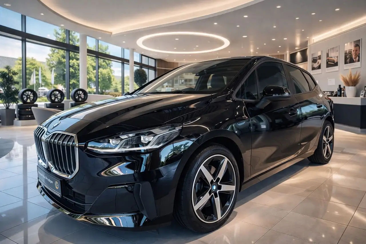 Dieser gepflegte BMW 218 Kombi aus 2024 präsentiert sich in elegantem Schwarz mit nur einem Vorbesitzer und vollständiger Servicehistorie. Der 136 PS starker Benziner -Motor und Frontantrieb bietet dank Automatikgetriebe ein komfortables Fahrerlebnis. Die umfangreiche Ausstattung umfasst ein digitales Cockpit mit Navigationssystem, Apple CarPlay und Android Auto sowie ein hochwertiges Soundsystem. Das Lederinterieur in Schwarz wird durch Ambientbeleuchtung stilvoll ergänzt. Für maximalen Komfort sorgen die 2-Zonen-Klimaautomatik, beheizbare Sitze und ein beheizbares Lederlenkrad. Zahlreiche Assistenzsysteme wie adaptiver Tempomat, Spurhalteassistent, Totwinkelwarner und automatisches Einparksystem erhöhen die Sicherheit. Der Wagen entspricht der Emissionsklasse Euro 6e und trägt die grüne Umweltplakette.