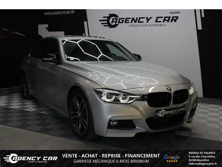 AGENCY CAR Showroom automobile à ValenceDepuis 2014, AGENCY CAR vous accompagne dans vos projets d'achat de véhicules d'occasion avec sérieux et transparence.Notre agence de Valence vous propose ce véhicule :BMW 320D F30 M ULTIMATE, GRIS CLAIR, 10 cv, 4 portes, première mise en circulation le 28-06-2018, garantie 6 mois.Véhicule visible UNIQUEMENT SUR RENDEZ-VOUS à l'agence de Valence (26).Horaires d'ouverture :Mardi au Vendredi : 10h - 12h / 13h - 18hSamedi : 10h - 15hFinancement possible de 12 à 72 moisGarantie jusqu'à 48 mois en optionLivraison dans toute la France (sur devis)Des erreurs peuvent se glisser dans nos annonces. Merci de nous contacter pour toute confirmation d'équipements ou d'informations.Vidéo 360° du véhicule disponible sur notre site internet. Véhicules similaires Audi A4, Mercedes Classe C, Skoda Octavia, Seat Leon, Volkswagen PassatLes options : Jantes en alliage léger 19' (48 cm) style 704 M à rayons doubles bicolores, Aluminium Line satiné, Camera de recul avec lignes de guidage sur l'écran multimédia, chassîs sport, Dispositif d'alarme, Frais de dossier 690 euros, Kit aerodynamique M Sport X, Navigation multimédia Professional, Omission Sigle, Pack Sport M, Pack Toit Ouvrant, Park Assist, Radars de stationnement automatiques PDC avant et arrière, Rideaux pare-soleil pour vitres et portes AR mécanique, Rideaux pare-soleil pour vitres latérales arrière, sieges sport, Surround View, Tapis de sol velours AV et AR, Volant cuir M