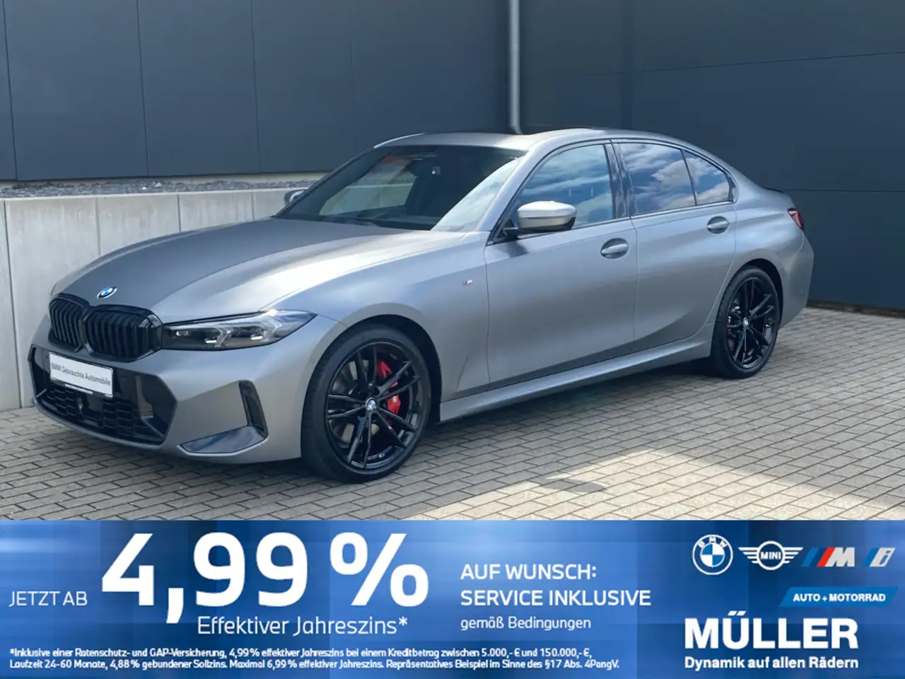 Weitere Informationen: Schlussrate 30.379 EUR, Laufzeit 48 Monate, Sollzins p.a. 5,83%, Sollzinsart gebunden, Nettodarlehensbetrag 44.957,94 EUR, Ratenabsicherung 1.867,94 EUR, Bearbeitungsgebühren 0,00 EUR, Anbieter BMW Bank GmbH, Heidemannstr. 164, 80939 München