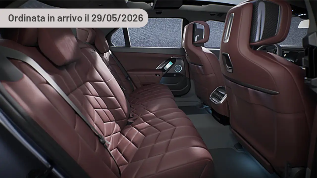 Sedili posteriori con schienale ribaltabile frazionato 40:20:40, Luci freno dinamiche, Soft Close, Indicatore temperatura esterna, Sospensioni adattive, Vetri elettrici posteriori, Specchietti retrovisori est. regolabili e ripieg. elett., riscaldati e lato guida autoanabbagliante, Controllo elettronico della trazione, Tecnologia My Modes (5+1): Personale; Efficiente; Sport; Espressivo; Relax - Teatro, Accensione senza inserimento chiave, Tendina parasole per lunotto e vetri laterali posteriori ad azionamento elettrico, Tappetini in velluto, Tetto panoramico con tendina per oscuramento, BMW TeleServices, Ugello lavavetri per telecamera di assistenza alla retromarcia, Indicatore pressione pneumatici, Volante sportivo in pelle a 2 razze con comandi multifunzione (logo con bordo blue), Freno di stazionamento elettromeccanico, Active Guard, BMW Connected Drive services, Ricarica Rapida AC (22kW), Controllo dinamico di stabilità DSC, Rivestimento in pelle Veganza, Sensore pioggia con accensione anabbaglianti, regolazione tergicristalli e sensore di appannamento, Shadow line esterna lucida, Antifurto con allarme, Volante sportivo M in pelle a tre razze, Batteria con morsetto di sicurezza, Predisposizione per pack Driving Assistant Plus (5AT), Climatizzatore automatico con controllo a 4 zone, BMW Connected Package Professional, Riscaldamento sedili anteriori, Mode 3 Charging Cable 22kW, Integral Active Steering, Cerchi in lega da 20" aerodinamici, style 907 M Bicolor con pneum. misti, Vernice pastello Alpine White, Spoiler posteriore in nero lucido, High Beam Assistant, Keyless entry, Segnalatore acustico cinture di sicurezza, Pulsante fisico di sblocco del cavo di ricarica, Apertura elettrica del bagagliaio, Sprint Mode, Cruise Control con funzione freno, Pac