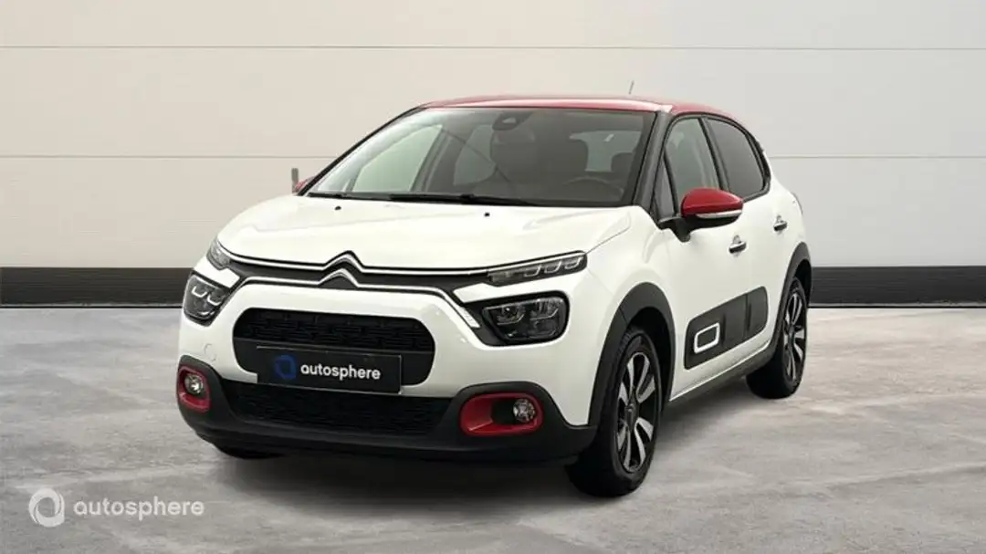 Marque: Citroen Modèle: C3 Version: 1.2 PureTech 110ch S&S Shine Pack 121-122g Energie: Essence Année: 2022 Couleur: Blanc Banquise (O) - Rouge Aden Carrosserie: Berline Boite: Manuelle Portes: 5 Places: 5 Cylindrée: 1199 Garantie: Spoticar-Premium 12 Mois Equipements: 6 Haut parleurs, ABS, AFIL, Aide au démarrage en côte, Aide au freinage d'urgence, Airbag conducteur, Airbag passager, Airbags latéraux avant, Airbags rideaux AV et AR, Allumage des phares automatique, Banquette 1/3-2/3, Banquette AR rabattable, Banquette arrière 3 places, Caméra de recul, Capteur de pluie, Clim automatique, Commandes vocales, Détecteur de sous-gonflage, Ecran multifonction couleur, Ecran tactile, ESP, Feux de jour à LED, Follow me home, Fonction MP3, GPS Cartographique, Interface Media, Jantes Alu, Kit mains-libres Bluetooth, Limiteur de vitesse, Lunette arrière surteintée, Mixte Tissu Brumeo/effet cuir Isabella, Ordinateur de bord, Ouverture des vitres séquentielle, Phares antibrouillard, Poignées ton carrosserie, Pommeau de levier vitesse en cuir, Prise USB, Radar de stationnement AR, Radio numérique DAB, Reconnaissance panneaux de signalisation, Régulateur de vitesse, Répartiteur électronique de freinage, Rétroviseur intérieur électrochrome, Rétroviseurs dégivrants, Rétroviseurs électriques, Rétroviseurs rabattables électriquement, Roue de secours, Siège conducteur réglable en hauteur, Témoin de bouclage des ceintures AV, Verrouillage centralisé à distance, Verrouillage centralisé des portes, Vitres arrière électriques, Vitres arrière surteintées, Vitres avant électriques, Volant réglable en profondeur et hauteur, Blanc Banquise (O) - Rouge Aden