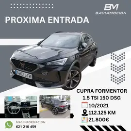 CUPRA FORMENTOR 1.5TSI 150CV DSG7, Matriculado 01/10/2021. vehículo Seminuevo, bajo consumo y mantenimiento. Camara de vision Trasera, Sensores de Aparcamientos, Cupra Connect. Pack Safety & Services, Remote Access, Online Infotaiment, Cuadro de mandos Digital Cockpit, CUPRA Drive Profile, Sistema de arranque sin llave KESSY, Climatizador automático, Pantalla 12', Antinieblas delanteros, climatizador, retrovisores eléctricos, control de crucero, volante multifunción, control de control de estabilidad esp, sensor de presión de neumáticos, espejos eléctricos calefactados. . . 12 meses de garantía, transferencia a nombre de nuevo comprador incluidos. pregunte por nuestra financiación. recogemos además su vehículo como parte de pago. no lo dude y llámenos, le atenderemos encantados. somos SEAT y KIA en El Puerto de Santa Maria y Rota.