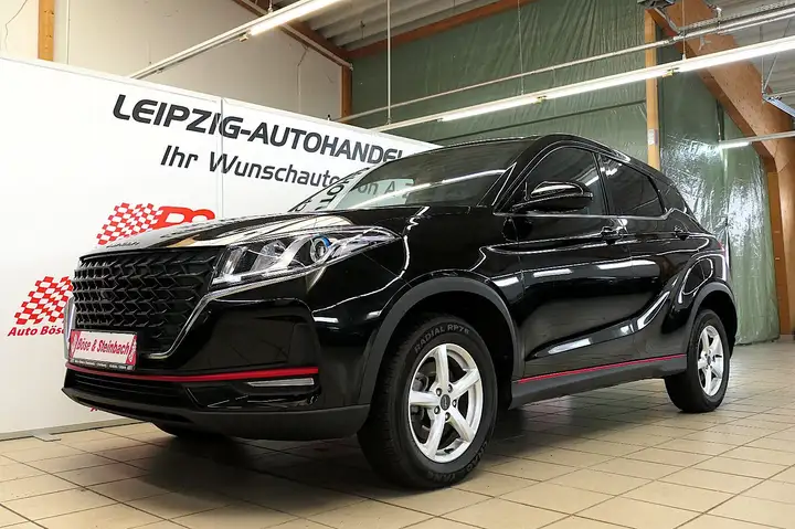 Dieser DFSK Fengon 500 SUV aus dem Jahr 2023 präsentiert sich in elegantem Schwarz mit schwarzer Lederausstattung. Der gepflegte Gebrauchtwagen hatte nur einen Vorbesitzer und verfügt über ein vollständiges Serviceheft. Mit seinem 1.5-Liter-Benzinmotor (106 PS, 4 Zylinder) und Frontantrieb bietet er ein ausgewogenes Fahrerlebnis. Die Ausstattung umfasst ein manuelles Klimatisierungssystem, Navigationssystem mit Touchscreen, LED-Tagfahrlicht und eine Rückfahrkamera. Der Fengon 500 erfüllt die Euro-6-Abgasnorm und trägt die grüne Umweltplakette. Für Sicherheit sorgen Front-Airbags, ABS, ESP und Reifendruckkontrolle. Komfortmerkmale wie elektrische Außenspiegel, Zentralverriegelung, Regensensor und Lichtsensor runden das Angebot ab.
