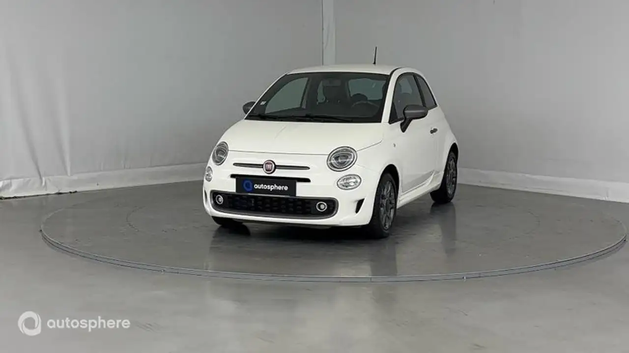 Marque: Fiat Modèle: 500 Version: 1.2 8v 69ch S Energie: Essence Année: 2019 Couleur: Blanc Carrosserie: Berline Boite: Manuelle Portes: 3 Places: 4 Cylindrée: 1242 Garantie: Confort AUTOSPHERE 12 mois Equipements: 6 Haut parleurs, ABS, Aide au démarrage en côte, Aide au freinage d'urgence, Airbag conducteur, Airbag genoux, Airbag passager déconnectable, Airbags latéraux avant, Airbags rideaux, Antidémarrage électronique, Antipatinage, Apple CarPlay et Android Auto, Appui-tête conducteur réglable hauteur, Appui-tête passager réglable en hauteur, Bacs de portes avant, Banquette 2 places, Banquette 50/50, Banquette AR rabattable, BAS, Boucliers AV et AR couleur caisse, Calandre chromée, Ceinture de vitrage chromée, Clim manuelle, Commandes du système audio au volant, Commandes vocales, Compte tours, EBD, Ecran multifonction couleur, Ecran tactile, ESP, Essuie-glace arrière, Feux de jour à LED, Filtre à Pollen, Follow me home, Interface Media, Jantes Alu, Kit mains-libres Bluetooth, Lampe de coffre, Limiteur de vitesse, Lunette AR dégivrante, Lunette arrière surteintée, Miroir de courtoisie passager éclairé, Ordinateur de bord, Phares antibrouillard, Phares halogènes, Porte-gobelets arrière, Porte-gobelets avant, Préparation Isofix, Prise auxiliaire de connexion audio, Prise USB, Radar de stationnement AR, Radio, Régulateur de vitesse, Rétroviseurs dégivrants, Rétroviseurs électriques, Siège conducteur réglable en hauteur, Sortie d'échappement chromée, Tablette cache bagages, Témoin de perte de pression pneumatique, Température extérieure, Verrouillage auto. des portes en roulant, Verrouillage centralisé à distance, Vitres arrière surteintées, Vitres avant électriques, Vitres teintées, Volant cuir, Volant multifonction, Volant réglable en hauteur, Volant sport