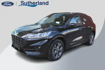 Ontspannen en zorgeloos autorijden, dat doet u met deze Ford Kuga. Zuiniger, schoner en stiller: dat zijn de voordelen van de hybride motor in deze Ford Kuga. De slimme combi van brandstof- en elektromotor is goed voor het milieu én de portemonnee! Hoogstaande comfortfuncties zoals stoelverwarming, verwarmbare achterbank en een verwarmbaar stuur maken deze auto tot een uitzonderlijke keuze. Ziet er goed uit, die sportstoelen. Maar waar het om gaat, is de solide zit onder alle omstandigheden. Licht, lucht, ruimte en gemak wordt verzorgd door het elektrisch bedienbare glazen panoramadak. In deze Ford profiteert u onder andere ook van: 18 inch lichtmetalen velgen, sportonderstel, adaptieve verlichting, in delen neerklapbare achterbank, LED-achterlichten en sportuitlaat.