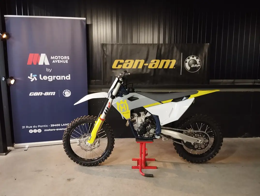 Votre concessionnaire Can-am - Motors Avenue de Landivisiau vous propose aujourd'hui : Husqvarna FC250 My24 4 Hrs au compteur ! 7 490 TTC Hors mise en service (89 ), Financement et assurance disponible sur place. Principales caractristiques Husqvarna FC 250 2023 : Moteur et chane cinmatique Alsage81 mm Course48.5 mm Puissance du moteur46 ch Type dembrayageMultidisque bain dhuile Nombre de vitesses5 Cylindres1 Temps4 temps SoupapesDOHC Refroidissementliquide Cylindre249.9 cm Suspension avantFourche tlescopique inverse MarqueWP Diamtre48 mm Dbattement305 mm Suspension arrire SuspensionBras oscillant AmortisseurMono-amortisseur Fixation damortisseurTimonerie Dbattement293 mm Chssis CadreChrome-molybdne Type de cadreDouble berceau, Tube central Angle de tte de fourche63.9 degr Freins avant TypeDisque unique Diamtre260 mm Freins arrire TypeDisque Diamtre220 mm Dimensions et poids Largeur du pneu avant80 mm Hauteur du pneu avant100 % Diamtre du pneu avant21 pouces Largeur du pneu arrire110 mm Hauteur du pneu arrire90 % Diamtre du pneu arrire19 pouces Hauteur de selle939 mm Capacit du rservoir de carburant7.2 l Pour plus d'information merci de contacter directement Milliau la concession. Motors Avenue Landivisiau, 21 rue du Pontic, 29400 Landivisiau.