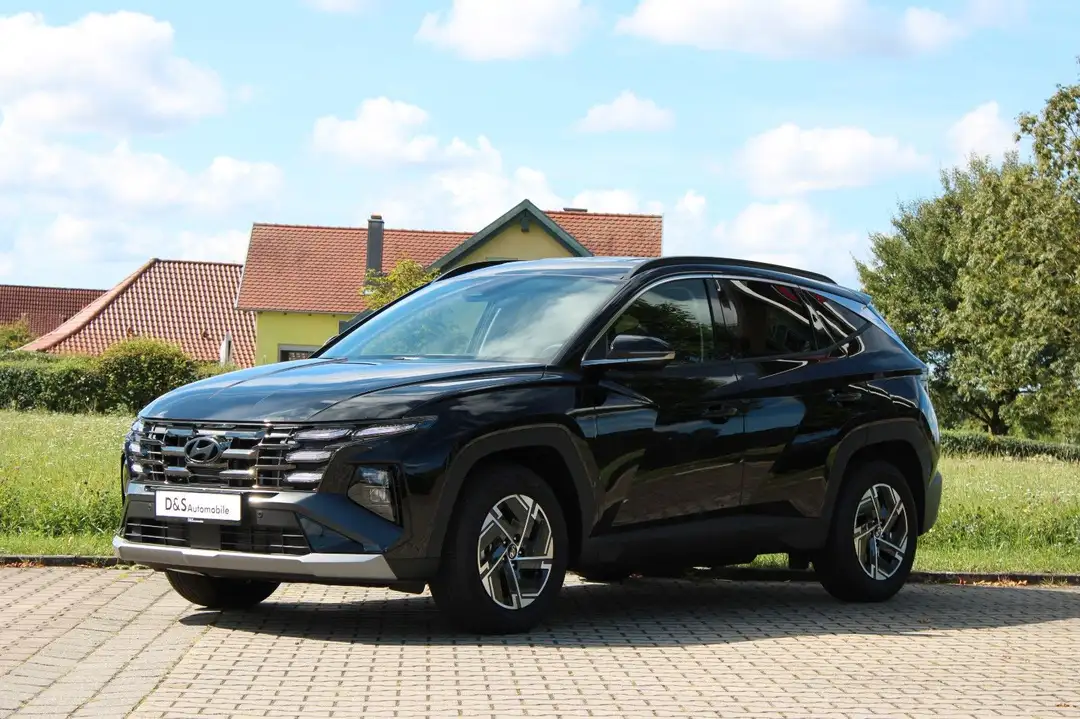 Dieser gepflegte Hyundai Tucson präsentiert sich in elegantem Schwarz mit Metallic-Lackierung. Das SUV aus dem Modelljahr 2025 ist eine Tageszulassung. Die Ausstattung umfasst eine 2-Zonen-Klimaautomatik, Navigationssystem, digitales Cockpit und Touchscreen mit Apple CarPlay und Android Auto. Besonders hervorzuheben sind die umfangreichen Sicherheitssysteme wie Spurhalteassistent, Kollisionsvermeidung, Totwinkelwarner und adaptiver Tempomat.