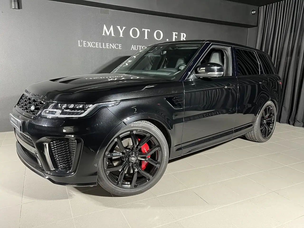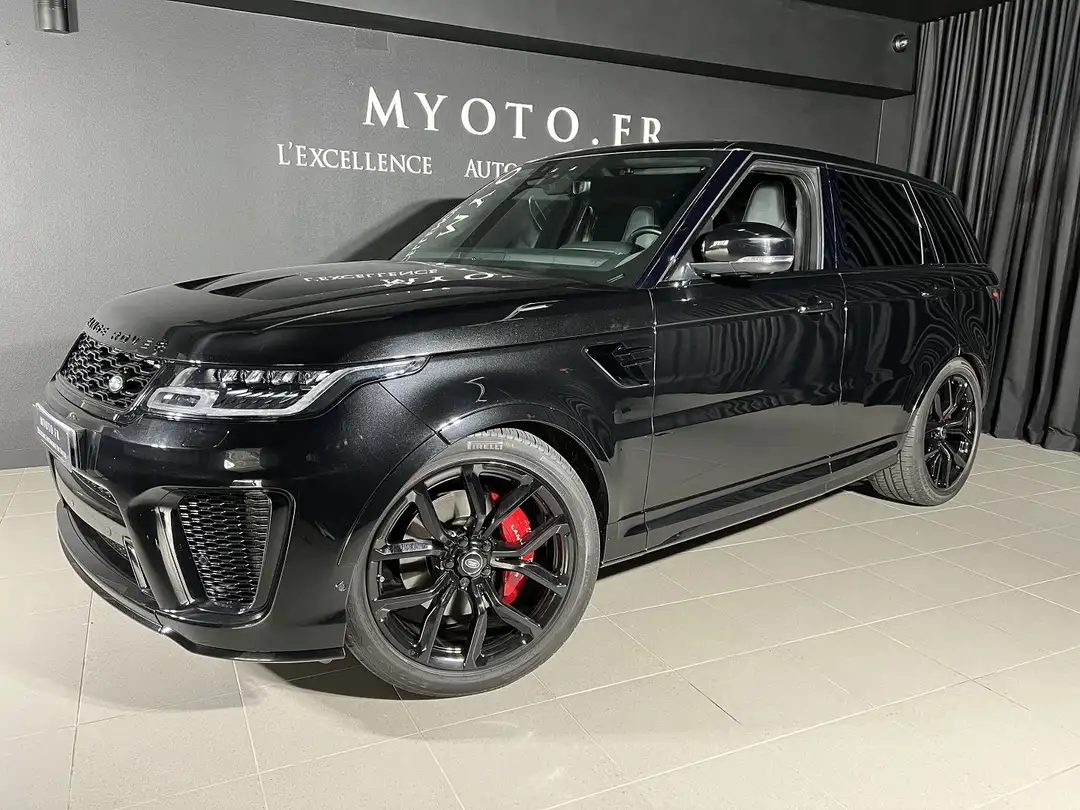 Toit ouvrant panoramique;Vitrage arrière fumé;JA 22' Style 5083 Gloss Black;Caméras panoramiques;Sièges AV chauff.+ventilés+AR chauffants;Audio Meridian Signature Reference 1700W;Volant chauffant;Santorini Black;Fermeture assistée des portières;Couvre-moteur en fibre de carbone;Finition fibre de carbone;Radio numérique DAB;Climatisation automatique 4 zones;Régul adapt+frein urgence haute vitesse;Clé loisirs;Pack Climat;Phares Pixel-Laser LED+signature LED;Pack Hiver;Pack fumeur;Pare-brise athermique;Pack Design fibre de carbone SVR;Prise domestique;Suspension adaptative;CARTE GRISE DERIV VP - TVA RECUPERABLE - PAS DE TVS;ATTELAGE;Armoiries SVR sur les appuis tête Sièges AV;Terrain Response;Volant en cuir avec finition CArbone SVR;Sellerie cuir;Système d'échappement sport avec ouverture des clapets;Ciel de toit en alcantara;*Liste non-exhaustive*;Étriers de freins rouges;Pare-soleil en alcantara;Sièges avants à réglages électriques avec pack mémoire;Caméra vue panoramique 360°;Clim automatique tri-zones;Coffre assisté électriquement;GPS Cartographique