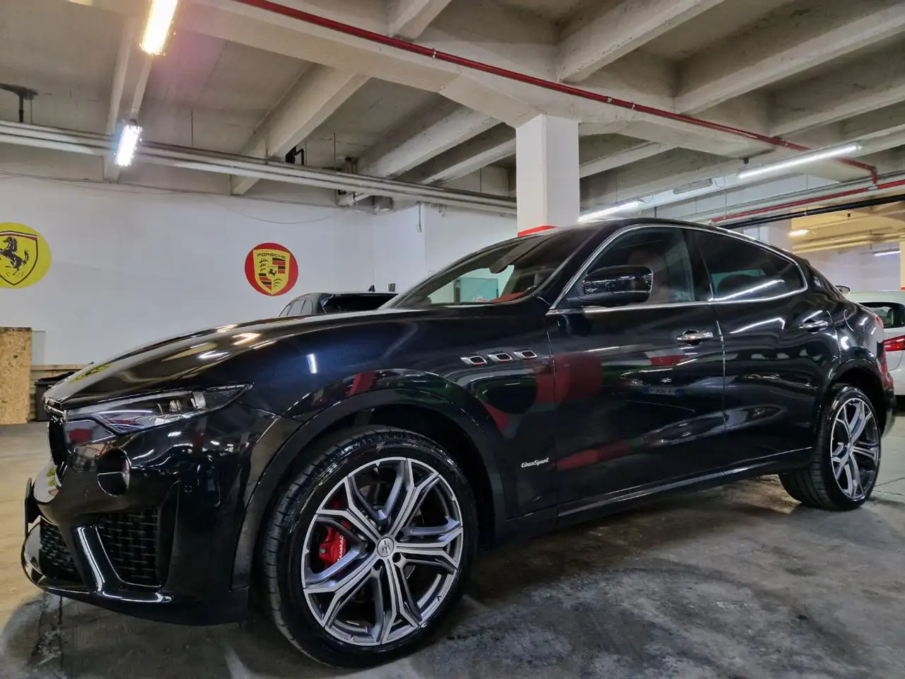 - CERCHI IN LEGA DA 21' DIAMANTATI '' HELIOS GRIGIO OPACO STAGGERED ''CON PNEUMATICI '' PIRELLI P-ZERO ''ANT. 265/40/21' AL 80% E POST. 295/35/21' AL 80% CON PINZE DEI FRENI COLOR ROSSO E SCRITTA MASERATI BIANCA