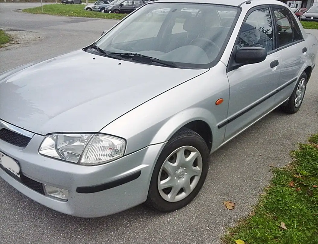 --- Ausstattung: silbergrau-metallic, Stoffsitze farbig gemustert, Colorglas, Euro 3-Kat, Servolenkung, Wegfahrsperre, 5-Gang-Getriebe, 4-bzw.5-türig, Heckwischer, 2. Aussenspiegel, Radio-mit Cass. org. Mazda, Zentralverr. mit FUNK, umklappb. Rückbank, Front- und Seiten-Airbags, KLIMA-Anlage, hint. Kopfstützen, elektr. Fensterheber, 3. Bremslicht, Getränkehalter, Radzierblenden, ABS, ergonom. Sitze, Mittelarm-Lehne, etc.