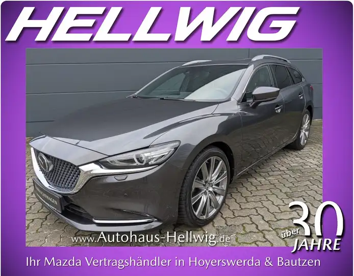 Mazda 6 Kombi Skyaktiv 2.5l (194PS) Takumi mit Nappaleder schwarz und Glasschiebedach in Machine Grey Metallic