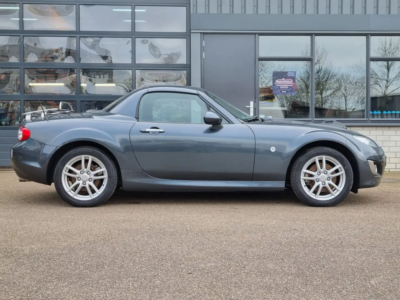 Een goed onderhouden MX-5 inclusief het bagagerek die klaar staat voor een nieuwe eigenaar.