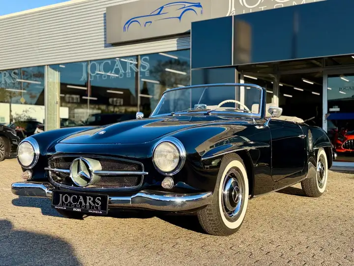 EntwicklungDer 190-SL-Prototyp für die New Yorker Ausstellung im Februar 1954 Im September 1953 trug der US-Importeur von Daimler-Benz, Max Hoffman, dem Unternehmensvorstand seine Ideen zur Steigerung des US-Geschäfts vor. Er wünschte sich zwei unterschiedlich konzipierte Sportwagenmodelle als Ergänzung für die bis dahin eher konservative Mercedes-Modellpalette. 190 SL und 300 SL auf der International Motor Sports Show in New York im Februar 1954 Für die Konzeption eines echten Sportwagens bot sich als Basis das Rennsport-Coupé 300 SL von 1952 an, das in den USA durch den Sieg bei der Carrera Panamericana Aufmerksamkeit erzielt hatte. Neben diesem sollte auch ein sportlicher Reisewagen mit hoher Alltagstauglichkeit angeboten werden. Hoffman erhielt die Zusage, dass vom 6. bis 14. Februar 1954 jeweils eine Studie dieser Fahrzeuge in New York auf der „International Motor Sports Show“ ausgestellt werden könne. Trotz der äußerst kurzen Entwicklungszeit von nur fünf Monaten konnten Prototypen des 300 SL und des 190 SL angefertigt werden, die von den Besuchern auf der New Yorker Autoschau und der Fachpresse begeistert aufgenommen wurden. Die Entwicklung des 300 SL war schon sehr weit vorangeschritten, so dass die Produktion im August 1954 beginnen konnte. An der New Yorker Ausführung des 190 SL nahm das Karosserie-Konstruktionsteam von Walther Häcker im Laufe des Jahres 1954 noch mehrere optische Retuschen vor, um das Fahrzeug näher der von Friedrich Geiger entworfenen Form des 300 SL anzugleichen (z. B. Entfernung der Lufthutze auf der Motorhaube sowie Retuschen an Blinkleuchten, Kühlergrill, Stoßstangen, hinterem Kotflügel und Armaturenbrett). Der erste überarbeitete 190 SL wurde im März 1955 beim Genfer Automobilsalon gezeigt. Die Serienfertigung begann zwei Monate später im Werk Sindelfingen, wo auch der 300 SL produziert wurde. Die ursprünglich anvisierte Höchstgeschwindigkeit von 190 km/h ließ sich nicht realisieren. In der Praxis war oft bereits bei ca. 170 km/h das Maximum erreicht. Zur IAA 1955 in Frankfurt am Main lag der Grundpreis der teuersten Variante „Coupé mit Hardtopaufsatz und Stoffverdeck“ bei 17.650 DM, was nach heutiger Kaufkraft und inflationsbereinigt 50.300 Euro entspricht. Ein Porsche 356 kostete damals 13.000 DM (heute 37.000 Euro).Mit einigen Zusatzausstattungen konnte der Preis eines 190 SL auf über 20.000 DM (57.000 Euro) steigen. Für die Hälfte dessen war eine Mercedes-180-Ponton-Limousine erhältlich. Der Verkaufspreis in den USA war im Vergleich zu dem in Deutschland niedriger angesetzt. Der Preis in Deutschland blieb über die gesamte achtjährige Bauzeit unverändert. Mit 25.881 gebauten Fahrzeugen erwies sich das Konzept eines Reisesportwagens mit Anlehnung an die Großserientechnik als erfolgreich. Der 190 SL verkörperte in der noch jungen Bundesrepublik Deutschland der Wirtschaftswunderzeit das „Wir-sind-wieder-wer-Gefühl“ und war ein beliebtes Requisit in vielen deutschen Spielfilmen dieser Ära.