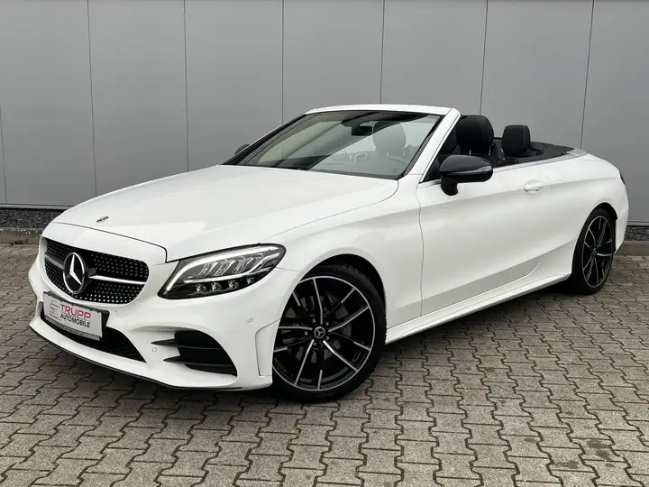 Erleben Sie Fahrvergnügen der Extraklasse mit diesem gepflegten Mercedes-Benz C 180 Cabrio aus dem Jahr 2019. Der 156 PS starke Benzinmotor mit 1.497 ccm Hubraum und Automatikgetriebe sorgt für dynamische Fahrleistungen bei gleichzeitiger Effizienz (Euro 6). Das elegante weiße Cabrio mit schwarzer Teilledersportausstattung überzeugt durch sein umfangreiches Ausstattungspaket. Die Kombination aus Heckantrieb und Sportpaket garantiert ein besonders agiles Fahrgefühl.