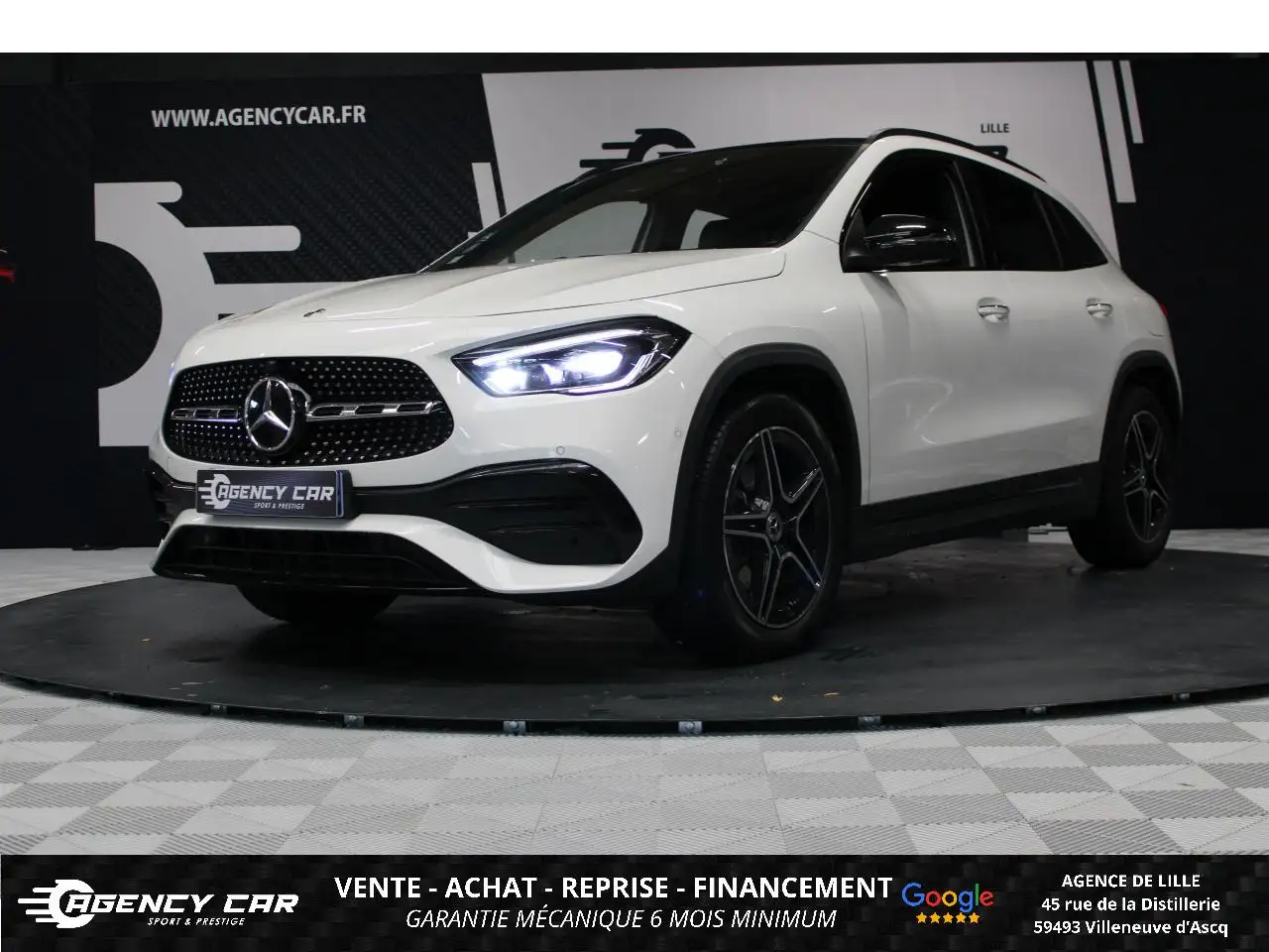 AGENCY CAR Showroom automobile à LilleDepuis 2014, AGENCY CAR vous accompagne dans vos projets d'achat de véhicules d'occasion avec sérieux et transparence.Notre agence de Lille vous propose ce véhicule :MERCEDES GLA, Blanc, 9 cv, 5 portes, parfait état, suivi complet Mercedes, première mise en circulation le 18-08-2020, garantie .Véhicule visible UNIQUEMENT SUR RENDEZ-VOUS à l'agence de Lille (59).Horaires d'ouverture : Lundi : 13h - 17hMardi au Vendredi : 10h - 18h30Samedi : 9h00 - 12h30Financement possible de 12 à 72 moisGarantie jusqu'à 48 mois en optionLivraison dans toute la France (sur devis)Des erreurs peuvent se glisser dans nos annonces. Merci de nous contacter pour toute confirmation d'équipements ou d'informations.Vidéo 360° du véhicule disponible sur notre site internet.Les options : Distronic : radar de contrôle de distance, Intégration smartphone, Jantes alliage AMG 19' design 5 branches bicolores avec pneus 235/45 R19, Pack d'Assistance à la conduite, Pack Exclusif AMG, Réception radio numérique, Siège conducteur à réglage électrique avec mémoire, Toit ouvrant panoramique électrique avec store pare-soleil électrique, fonction de fermeture en cas de pluie et protection anti-pincement, Vitres arrière et lunette arrière surteintées, ABS (antiblocage de roues) et ASR (antipatinage), Accoudoir avant avec vide-poches, ADAPTIVE BRAKE avec fonction HOLD et aide au démarrage en côte, Allumage automatique des projecteurs, Assistant de feux de route, Banquette arrière rabattable 1/3-2/3, BAS (freinage d'urgence assisté), Boîte de vitesses automatique à double embrayage 7 rapports 7G-DCT avec palettes de commandes au volant, Capteur de pluie, Clignotant avec commande confort par impulsions, Climatisation automatique confort THERMOTRONIC à 2 zones avec affichage digital et réglages séparés conducteur/passager, Colonne de direction réglable mécaniquement en hauteur et en profondeur, Combiné d'instruments sport, Contrôle de la pression des 4 pneus et alerte conducteur dans le combiné d'instruments, Dynamic Select: 4 modes de conduite (Confort, Sport, Eco ou Personnalisé) agissant sur le moteur, la transmission, la suspension et la direction, Éléments décoratifs intérieurs et buses d'aération chromés, ESP (régulation de comportement dynamique), Feux antibrouillard arrière, Fonction d'arrêt/redémarrage 'Stop/Start ECO' avec commutateur de désactivation manuelle, Frein de parking électrique, Habillage des passages de roues en plastique noir grainé, Indicateur dynamique de maintenance (ASSYST PLUS), Interface USB dans l'accoudoir central avant, Lève-vitres électrique (x4) à commande séquentielle et dispositif anti-pincement, Mercedes connect me : Système d'Appel d'Urgence Mercedes-Benz, Ordinateur de bord, Pack AMG Line, Pack d'éclairage intérieur, Pack Premium, Pneus avec possibilité de roulage à plat, Rétroviseurs extérieurs électriques chauffants et asphériques avec rappels de clignotant intégrés, Volant multifonctions à 12 touches