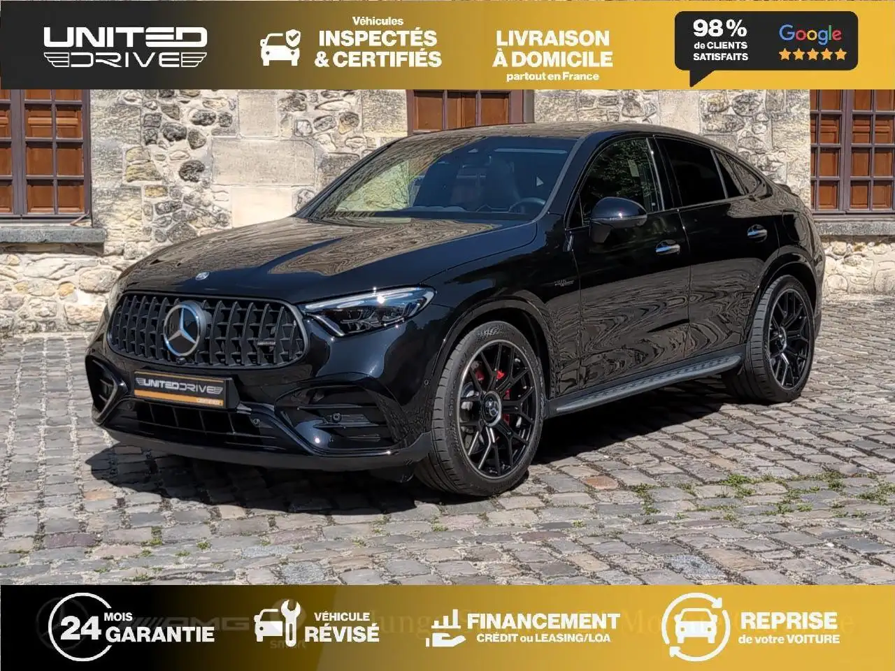 MERCEDES-BENZ GLC 63 AMG SE PERFORMANCE – 680 chAnnée : 03/2024Kilométrage : 26.000 kmCouleur extérieure : NOIR METAL Intérieur : Cuir/ Alcantara noirPropriétaire : 2ème main certifiéeDisponibilité : immédiateTVA non récupérable PRINCIPALES OPTIONS : Caméra 360° Affichage tête haute (HUD) Pack Carbone AMG Freins céramique haute performance Suspensions AMG RIDE CONTROL Sièges chauffants & Sièges Performance AMG Son 3D Burmester® Toit ouvrant panoramique Navigation MBUX Premium / Apple CarPlay / Android Auto Keyless / Hayon EASY-PACK Pack assistance à la conduite Plus DISTRONIC / Maintien de voie / Détection d'angle mort *Équipements et options donnés à titre indicatif, certifiés exacts avant commande. SERVICES UNITED DRIVE Véhicule contrôlé & historique complet Mercedes-Benz Garantie réseau constructeur Europe jusqu'à 60 mois (option) Livraison à domicile France entière Reprise sous 48h / Financement LOA – Crédit – LLD Recherche personnalisée gratuite si autre configuration souhaitée À PROPOS UNITED DRIVE – Courtier automobile premium depuis 20 ans?? Véhicules certifiés & historiques contrôlés?? Démarches 100 % clés en main?? Garantie constructeur Europe jusqu'à 60 mois?? Reprise 48h & financement dispo Contact direct (11h–21h)Téléphone & WhatsApp : +33 1 84 80 54 90 Instagram : @united.drive Les options :