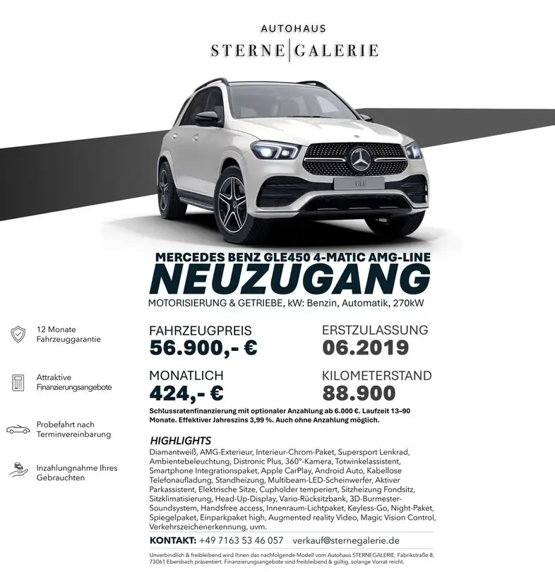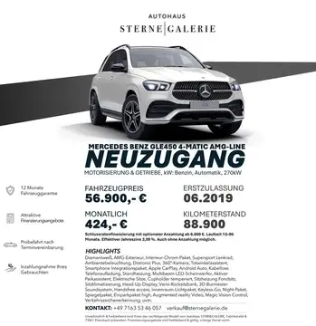 Angeboten wird ein wunderschöner MERCEDES-BENZ GLE450 4-MATIC, mit einer sehr guten Ausstattung und einem gepflegten Zustand!