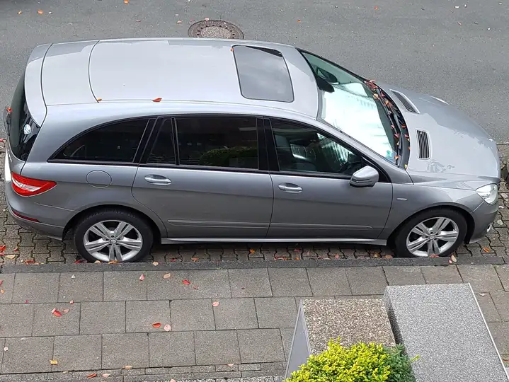 R-Klasse-Kombi als Langversion, bei Mercedes-Benz /Wesel scheckheftgepflegt mit verbrauchsgünstigem Bluetec-155 KW-sechzylinder-Motor, 7-Gang-Automatikgetriebe. Servolenkung. Multifunktions-Lenkrad. Tempomat. Abgasreinigung Euro 6-Technik. Farb-Lackierung in palladiumsilber-metallic, MB-Commandsystem ausgetauscht 2025 gegen Pioneer-Bordcomputer für Navigation, Radiosysteme, CD-Spieler, zwei USB-Anschlüsse, Freisprecheinrichtung und Rückfahrkamera-System. Klimatisierungsautomatik. Feuerlöscher. Neue Starter-Batterie. Laderaumabdeckungs-Rollo und Laderaumboden-Schutzabdeckung. Spannbares Sicherheitsnetz zur Laderaumabtrennung. Sonnenschutz-Folien an hinteren Türen, Dreieck-Seitenfenstern und Laderaum-Klappe-Scheibe abnehmbar. Sitze / Polster Ledernachbildung Artico/Stoff Aspen schwarz. Schiebedach elektrisch in Glasausführung. Außenspiegel elektrisch anklappbar. Rücksitze einklappbar zur Laderaum-Vergrößerung. Anhängervorrichtung abnehmbar. 20"-Leichtmetall-Winterräder, 18"Zoll-Leichtmetall-Sommerräder . Weiteres Zubehör sind Dachträgerschienen und Fahrradträgersystem für Anhängerkupplung von Mercedes Benz einklappbar.