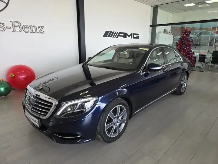 Mercedes-Benz S 350 BLUETEC! Cambio automático, faros led intelligent light system, luces de carretera automáticas, sensores de aparcamiento con camara 360°, llantas de aluminio 17", techo panorámico, servocierre, color azul cavansita, porton trasero eléctrico, airmatic, distronic, paquete a la conduccion, detector activo angulo muerto y carril, asientos de cuero beige eléctricos con memoria, calefacción y ventilación, navegador, Bluetooth, climatizador THERMATIC, iluminación ambiental, volante de cuero y madera, cortinilla trasera eléctrica, tempomat, etc. Nacional. Garantía oficial Mercedes-Benz 12 meses.
