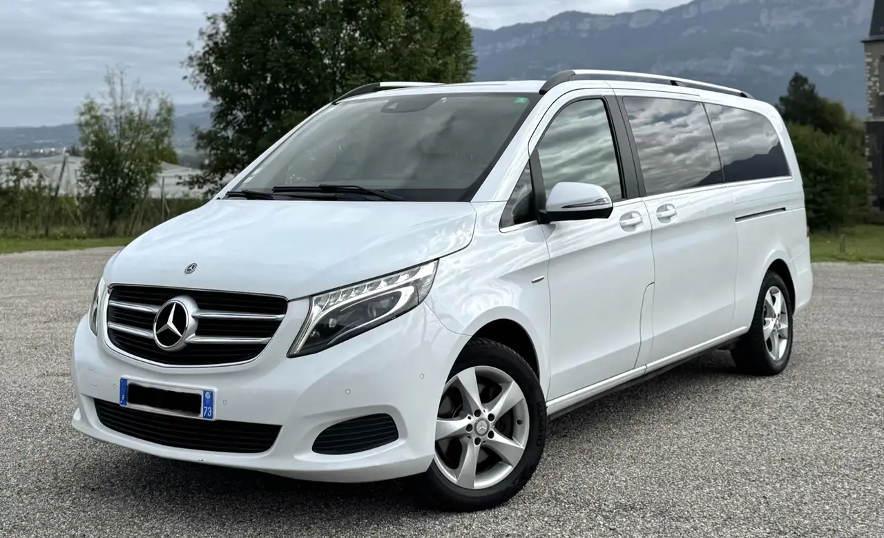 Mercedes classe V250 CDI 190ch XL 4matic 7G-Tronic 2.2l Bluetech Moteur à chaîne increvable .Année 2018 avec 239.000km 7places , 5 portes, couleur blanc nacré.ANCIEN VÉHICULE TAXI,Donc véhicule entretenu régulièrement.Équipement : -Salon arrière -Table central amovible-Sièges en cuir blanc-Caméra de recul -GPS Navigation -pallette au volant -3mode de conduite SPORT/confort/ECO-vitres teintées -attelage remorque -2 portes latéraux électriques -luminosité ambiant -Jantes allu -Climatisation bi-zonnes -commande centrale -commande au volant -Prise USB/AUX-Rétro électrique/rabatable-Régulateur de vitesse -limiteur de vitesse-Bluetooth-vitres électriques-Double de clef - ETC…. Le véhicule roule parfaitement et agréable à conduire .Pour plus d’informations par téléphone .Prix 31.990€ légèrement négociable