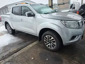 6 Lautsprecher, Airbag Beifahrerseite abschaltbar, Airbag Fahrer-/Beifahrerseite, Audiobedienung am Lenkrad, Audiosystem: Radio mit CD- und MP3-Player, Automatische Fahrlichtschaltung, Außenspiegel elektr. anklappbar, Außenspiegel elektr. verstellbar, Außenspiegel heizbar, Außenspiegel mit Chromblende, Außentemperaturanzeige, Bremsassistent (Nissan Brake-Assist), Chromeinfassung für Nebelscheinwerfer, Coming-Home-Lichtfunktion (Friendly Lightning), Differentialsperre mit begrenztem Schlupf, Fahrassistenz-System: Autonomer Notbrems-Assistent, Fahrassistenz-System: Bergabfahr-Assistent, Fahrassistenz-System: Berganfahr-Assistent, Fahrer-Informations-System (FIS) mit Farbdisplay, Fensterheber elektrisch hinten, Freisprechanlage Bluetooth, Frontscheibe mit Bandfilter oben, Gurtstraffer, Heckscheibe heizbar, Innenspiegel mit Abblendautomatik, Isofix-Aufnahmen für Kindersitz, Karosserie/Aufbau: Doppelkabine (Double-Cab), Karosserie/Aufbau: Pick-Up, Klimaautomatik 2-Zonen, Knieairbag Fahrerseite, Kopf-Airbag-System, Kopfstützen hinten, Lenksäule (Lenkrad) verstellbar, LM-Felgen, Motor 2,3 Ltr. - 140 kW dCi Diesel KAT, Radstand 3150 mm, Reserverad in Fahrbereifung, Rückfahrkamera mit integriertem Farbmonitor im Rückspiegel, Schadstoffarm nach Abgasnorm Euro 6, Scheibenwischer mit Intervallschaltung, Schienensystem Lastenverankerung, Schmutzfänger hinten, Schmutzfänger vorn, Seitenairbag, Sitz vorn links höhenverstellbar, Sitzbezug / Polsterung: Stoff, Sitzheizung vorn, Start-Stop-Knopf, Steckdose (12V-Anschluß), Stoßfänger hinten verchromt, Stoßfänger vorn Wagenfarbe, Trittbretter seitlich, USB-Schnittstelle, Verglasung hinten abgedunkelt