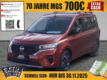 Außenausstattung Außenspiegel: Außenspiegel elektrisch anklappbar Außenspiegel: Außenspiegel elektrisch einstell- und beheizbar Außenspiegel: Außenspiegel schwarz glänzend lackiert mit intgrierten LED-Blinklichtern Beleuchtung: Fahrlichtautomatik Beleuchtung: LED-Scheinwerfer Beleuchtung: LED-Tagfahrlicht Bereifung und Räder: 16"-Leichtmetallfelgen Design: Dachreling inkl. Dachträger Design: Dunkel getönte Scheiben ab der B-Säule Design: Stoßfänger in Wagenfarbe Design: Türgriffe in Wagenfarbe lackiert Karosserie: Heckklappe, verglast Karosserie: Schiebetür links und rechts, verglast (inkl. verglaste Hecktüren) Innenausstattung Ablagen: Ablagefach in der Mittelkonsole Ablagen: Klapptische an den Rücksitzlehnen Interieur: Lederschaltknauf Interieur: Lenkrad aus Leder Interieur: Smartphone-Halterung Klimatisierung: Klimaautomatik, 2 Zonen Sitze: Beifahrersitz manuell höhenverstellbar Sitze: Fahrersitz höhenverstellbar Sitze: Mittelkonsole inkl. Armlehne Sicherheit und Technik Assistenz-Systeme: Einparkhilfe, vorne und hinten Assistenz-Systeme: Elektronisches Stabilitätsprogramm (ESP) Assistenz-Systeme: Fernlicht-Assistent Assistenz-Systeme: Intelligenter autonomer Notbremsassistent mit Kollisionswarnsystem Assistenz-Systeme: Regensensor Assistenz-Systeme: Rückfahrkamera in Farbe Assistenz-Systeme: Verkehrszeichenerkennung Fahrerassistenz-Paket PRO: Intelligenter Spurhalte-Assistent Fahrerinformationsystem: Reifendruckkontrollsystem Fahrerinformationsystem: Tempopilot mit Geschwindigkeitsbegrenzer Infotainment & Navigation: Fahrerinformationssystem mit 4,2"-TFT Farbdisplay Infotainment & Navigation: Induktives Smartphone-Ladegerät Infotainment & Navigation: NissanConnect Navigation Infotainment & Navigation: Radio inkl. DAB+, Bluetooth® Freisprecheinrichtung, Lenkradfernbedienung, USB- und AUX-Anschluss Infotainment & Navigation: USB-Anschluss an der zweite Reihe Infotainment & Navigation: Warnung bei Überschreitung der Geschwindigkeitsgrenze Interieur: Elektrische Fensterheber mit Impulsfunktion Fahrerseite Interieur: Innenspiegel automatisch abblendbar Interieur: Sitzheizung Fahrer- und Beifahrersitz Sicherheit: Fahrer- und Beifahrerairbag Sicherheit: Intelligente Müdigkeitserkennung Sicherheit: ISOFIX-Kindersitz-Befestigungspunkte an den Außenplätzen der Rücksitzbank Sicherheit: ISOFIX-Kindersitz-Befestigungspunkte, Beifahrerseite, vorne Sicherheit: Seitenairbags vorne Sicherheit: Vorrichtung zum Einbau einer alkoholbedingten Wegfahrsperre Sicherheit: Zentralverriegelung mit I-Key (Handsfree-entry)