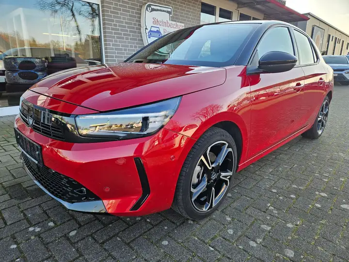 6 Lautsprecher, Airbag Fahrer-/Beifahrerseite, Audiosystem Multimedia, Außenspiegel elektr. verstell- und heizbar, elektr. anklappbar, B-Säulen schwarz Hochglanz (außen), Bordcomputer, Bremsassistent, Dach Kontrast-Lackierung, Dachhimmel schwarz, Einparkhilfe vorn und hinten mit Parksensoren seitlich, Elektron. Stabilitäts-Programm Plus (ESP), Fahrassistenz-System: Berganfahr-Assistent (HSA, Hill Start Assist), Fahrassistenz-System: Müdigkeitserkennungs-Sensor, Fahrassistenz-System: Spurhalteassistent, Fahrassistenz-System: Totwinkel-Assistent, Fahrassistenz-System: Verkehrszeichenerkennung, Farbdisplay (7 Zoll), Fensterheber elektrisch vorn + hinten, Fensterheber vorn elektr. mit Einklemmschutz, Feststellbremse elektrisch, Gepäckraumbeleuchtung (LED), Geschwindigkeits-Regelanlage (Tempomat) inkl. Geschwindigkeits-Begrenzeranlage, Getriebe Automatik - mit Start-/Stop (8-Stufen), Heckleuchten LED, Heckscheibenwischer, Innenausstattung: Dekorleisten Rot, Isofix-Aufnahmen für Kindersitz an Beifahrersitz, Isofix-Aufnahmen für Kindersitz an Rücksitz, Karosserie: 5-türig, Kopf-Airbag-System, Kraftstofftank 44 Ltr., Lenkrad (Leder, vegan) mit Multifunktion, Lenksäule (Lenkrad) verstellbar, Leseleuchten vorn (2), Mittelarmlehne vorn mit Ablagefach, Modellpflege, Motor 1,2 Ltr. - 74 kW, Nebelschlussleuchte, Opel Connect, Otto-Partikelfilter (OPF), Parkpilotsystem vorn und hinten, Pedale Aluminium, Reifen-Reparaturkit, Rückfahrkamera mit 130° Umgebungsansicht, Rücksitzbank geteilt/klappbar (60:40), Schadstoffarm nach Abgasnorm Euro 6e, Scheinwerfer LED, Seitenairbag vorn, Sicht-Paket, Sitzbezug / Polsterung: Stoff, Sportsitze vorn, Stoßfänger Sport-Design, Stoßfänger Wagenfarbe, Türgriffe außen Wagenfarbe, Türgriffe innen verchromt, Warnanlage für Sicherheitsgurt, Beifahrerseite, Warnanlage für Sicherheitsgurt, Fahrerseite, Warnanlage für Sicherheitsgurte hinten