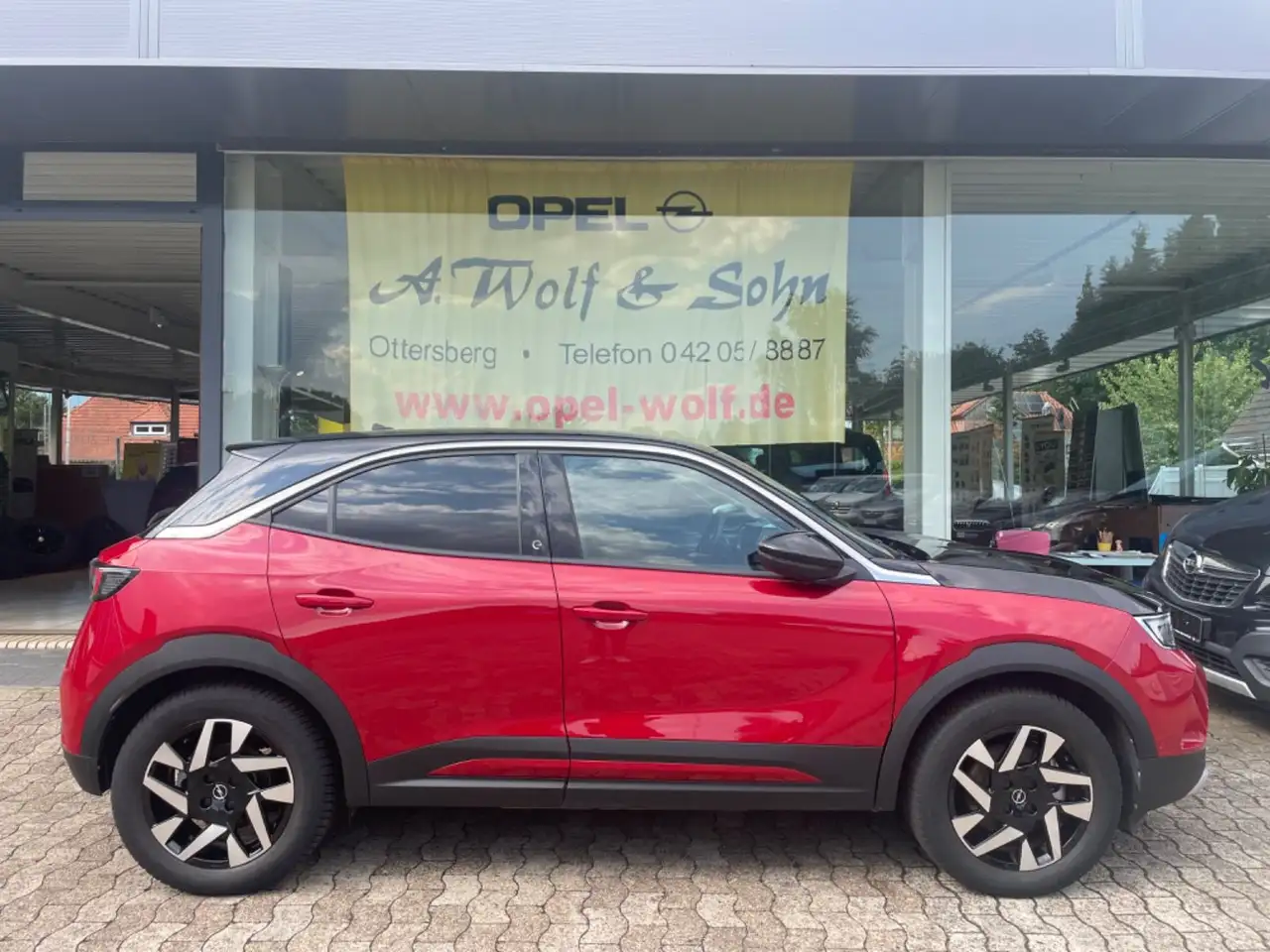 - Lackierung: Power Rot Metallic - Dach und Motorhaube in Diamant Schwarz Metallic