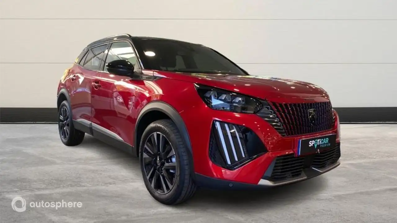 Marque: Peugeot Modèle: 2008 Version: 1.2 PureTech 130ch S&S GT EAT8 Energie: Essence Année: 2025 Couleur: Rouge Elixir (S) Carrosserie: SUV Boite: Automatique Portes: 5 Places: 5 Cylindrée: 1199 Garantie: Spoticar-Premium 12 Mois Equipements: 6 Haut parleurs, ABS, AFIL, Aide au démarrage en côte, Aide au freinage d'urgence, Airbag conducteur, Airbag passager, Airbags latéraux avant, Airbags rideaux, Allumage des phares automatique, Antipatinage, Appel d'Assistance Localisé, Appel d'Urgence Localisé, Appui-tête conducteur réglable hauteur, Appui-tête passager réglable en hauteur, Arrêt et redémarrage auto. du moteur, Banquette 1/3-2/3, Barres de toit, Becquet arrière, Borne Wi-Fi, Caméra de recul, Capteur de pluie, Ceintures avant ajustables en hauteur, Clim automatique, Contrôle Dynamique de la Stabilité, Démarrage sans clé, Détecteur de sous-gonflage indirect, Dispositif freinage automatique, Eclairage d'ambiance, Ecran multifonction couleur, Ecran tactile, ESP, Feux arrière à LED, Feux de jour à LED, Feux de route automatiques, Filtre à Pollen, Fixation Isofix siège passager avant, Fixations Isofix aux places arrières, Follow me home, Freinage automatique d'urgence, Gris Selenium (M), Guidage pour manoeuvre de stationnement, Indicateur de limitation de vitesse, Interface Media, Jantes Alu, Kit mains-libres Bluetooth, Lampe de coffre, Limiteur de vitesse, Lunette arrière surteintée, Lunette arrière teintée, Mode de conduite, Ouverture des vitres séquentielle, Pare-brise acoustique, Pédalier sport, Phares additionnels en virage, Phares antibrouillard LED, Phares avant LED, Plafonnier central AV et AR à LED, Plancher de coffre mobile, Poches d'aumonières, Poignées ton carrosserie, Prise USB, Radar de stationnement AR, Radar de stationnement AV, Radio numérique DAB, Reconnaissance panneaux de signalisation, Régulateur de vitesse, Répartiteur électronique de freinage, Répétiteurs de clignotant dans rétro ext, Rétroviseur intérieur électrochrome, Rétroviseurs dégivrants, Rétroviseurs électriques, Rétroviseurs rabattables électriquement, Siège conducteur réglable en hauteur, Siège passager réglable en hauteur, Système avancé de détection d'obstacles, Système d'accès sans clé, Système d'éclairage intelligent, Système de détection de somnolence, Système de prévention des collisions, Témoin de bouclage des ceintures AV, Tissu BELOMKA, Verrouillage auto. des portes en roulant, Verrouillage centralisé à distance, Verrouillage centralisé des portes, Vitres arrière électriques, Vitres arrière surteintées, Vitres arrière teintées, Vitres avant électriques, Volant cuir, Volant multifonction, Volant réglable en hauteur, Volant réglable en profondeur et hauteur, Rouge Elixir (S)