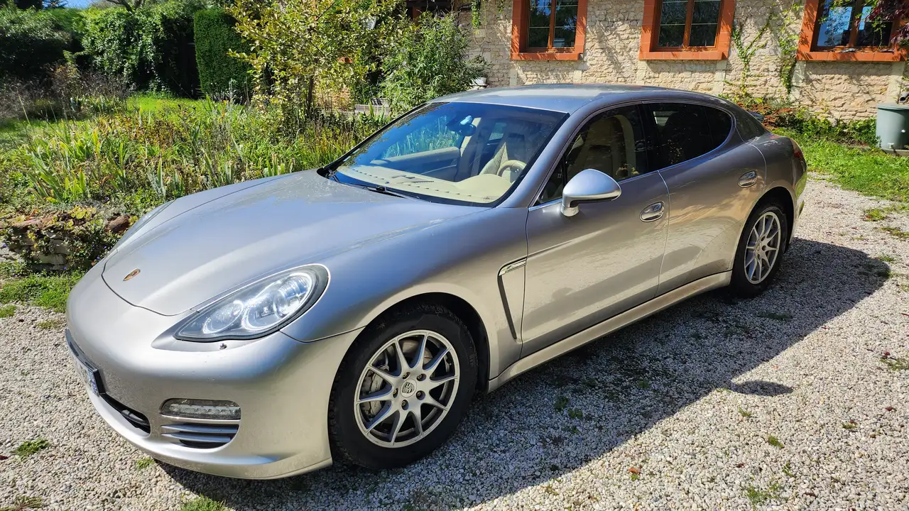 Porshche Panamera 4S à vendre. 1ère MEC 12/2009. 4.8l V8 atmosphérique, 294 kW/500Nm, 4 roues motrices, boîte 7 vitesses PDK. Couleur extérieure brun topaz métallisé, l'intérieur tout cuir est en beige luxor avec inserts en ronce de noyer. Jantes 18" Panamera S design avec pneumatiques Pirelli Sottozero. Le véhicule est bien entretenu et ne montre pas de défauts mécaniques, que ce soit au niveau du moteur, de la transmission ou bien de la suspension. Cette voiture est bien équipé avec les options suivantes:Tableau de bord en cuir,Pack Sport Chrono PlusSuspension pneumatique avec PDCC (Porsche Dynamic Chassis Control)PCM avec NavigationSièges avant ventillés Stores électriques sur les fenêtres arrières et sur la lunette arrièreExtincteur portatifRadar de stationnement à l'arrière.Il y a pourtant quelques traces d'usure ou petites imperfections esthétiques (voir photos).Le véhicule a appartenu à un vieux monsieur maintenant décédé pour les derniers 5 ans et pendant ce temps il a fait moins de 10000 km. La distribution a été refaite il y a 4 ans. Dernier grand entretien par un centre Porsche en 2022. Porsche Panamera 4S zum verkaufen. Erste Zulassung 12/2009. 4,8 liter V8 sauger, 400PS/500Nm, Allradantrieb und 7-Gang PDK. Aussenfarbe Topazbraun Metallic und Innenfarbe Luxorbeige mit Nussbaum-Wurzel. 18-Zoll "Panamera S design" Leichtmetallfelgen mit Pirelli Sottozero Reifen. das Fahrzeug ist gut gewartet und hat keine mechanische Probleme (Motor, Antrieb und Fahrwerk). Das Auto wurde mit den folgenden Optionen ausgestattet:Mit Leder bezogene SchalttafelSport Chrono Plus - Paket (Zusätzlicher Sport Plus -Modus mit Chrono auf der Schalttafel)Luftfederung mit PDCC (Porsche Dynamic Chassis Control)PCM mit NavigationsmodulVordere SitzbelüftungSonnenschutzrollos auf den hinteren Seitenscheiben und auf der HeckscheibeFeuerlöscherParksensoren hinten.Man kann ein paar gebrauchsspuren und einige ästhetische Makel (Fotos schauen)Während der letzten 5 Jahren gehörte das Auto einem alten, jetzt verstorbenen Mann und er ist in diesem Zeitraum weniger als 10000km damit gefahren.Die Steuerkette wurde vor 4 Jahren ausgetauscht und die letzte großere Wartung in einem Porsche Zentrum war 2022.